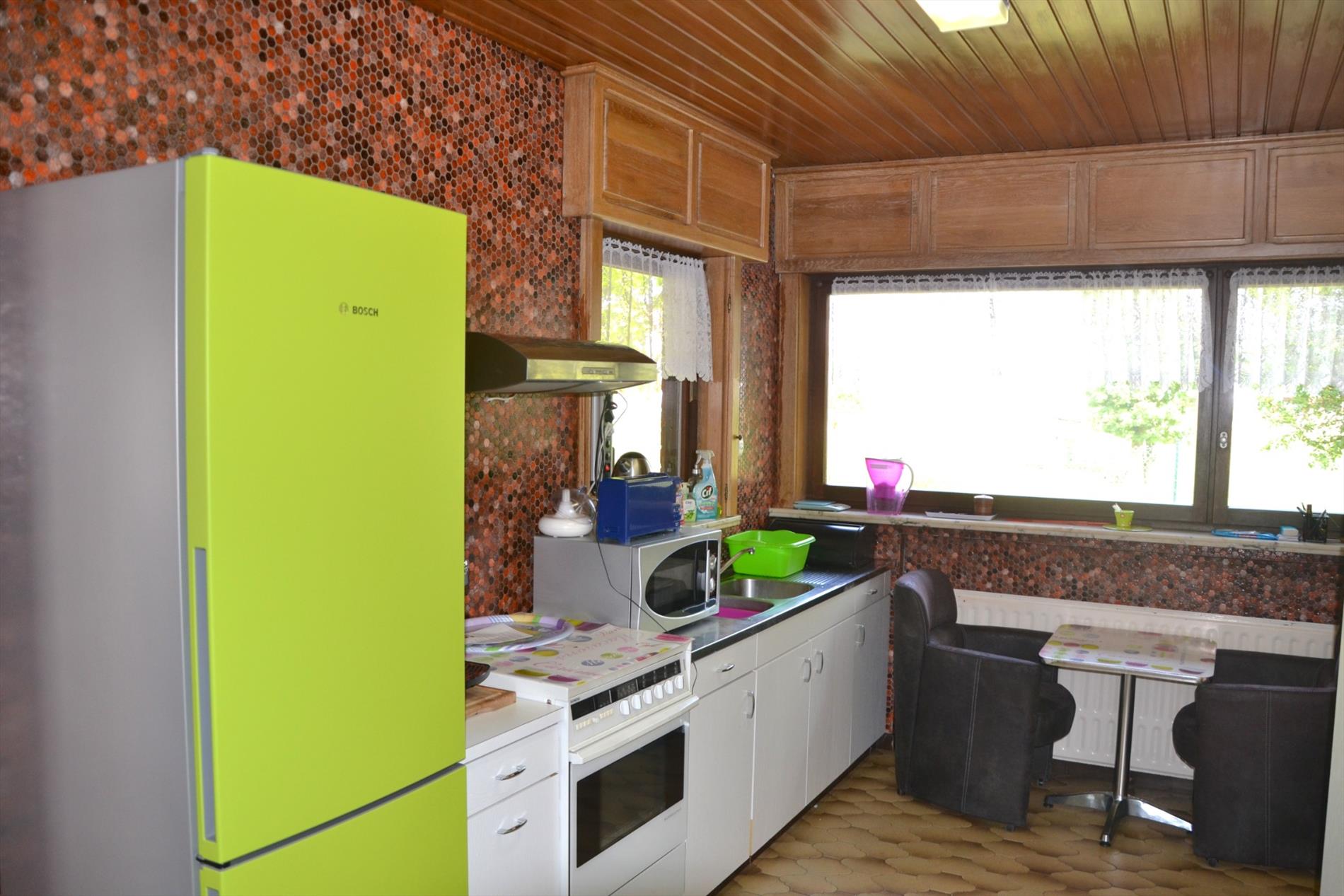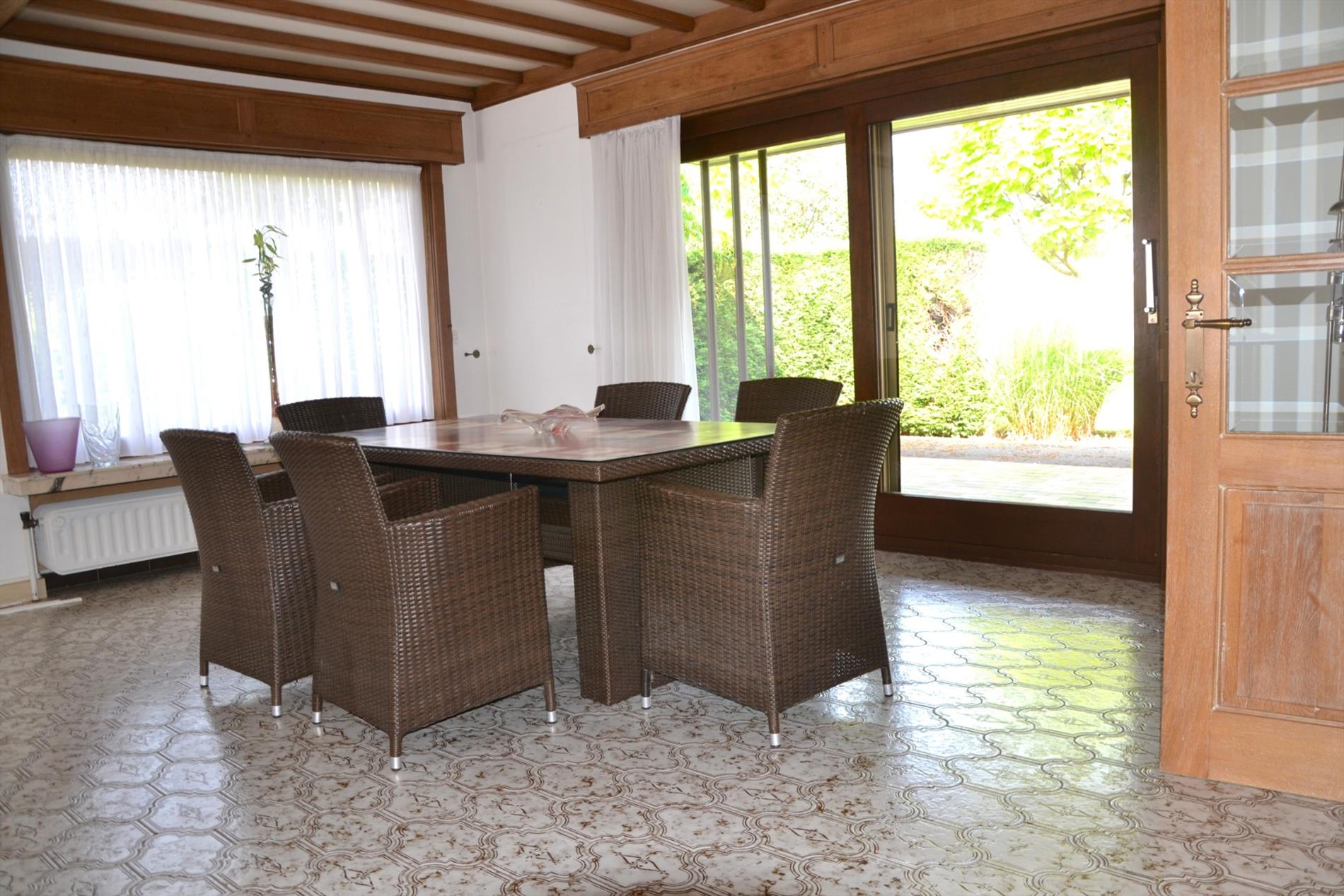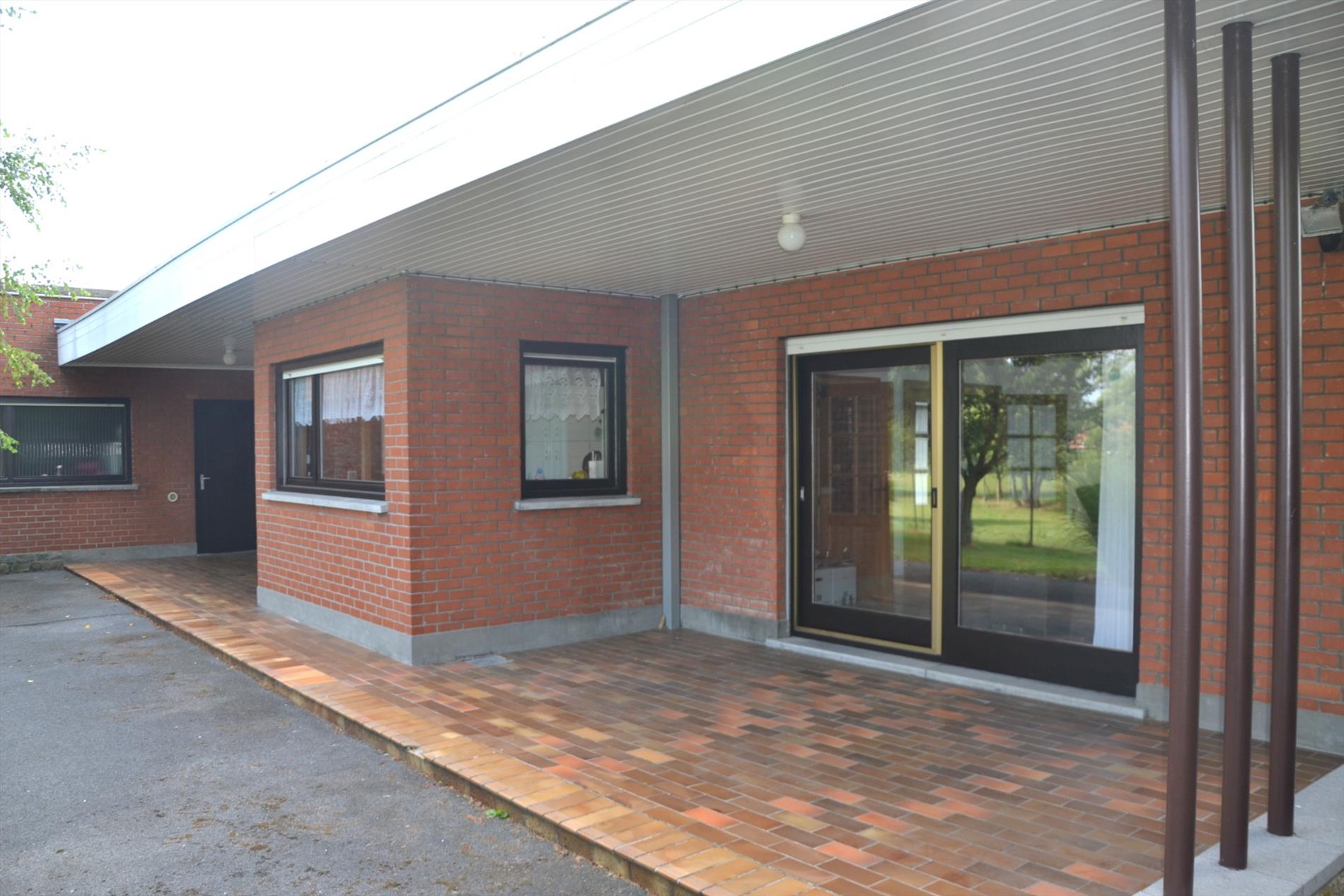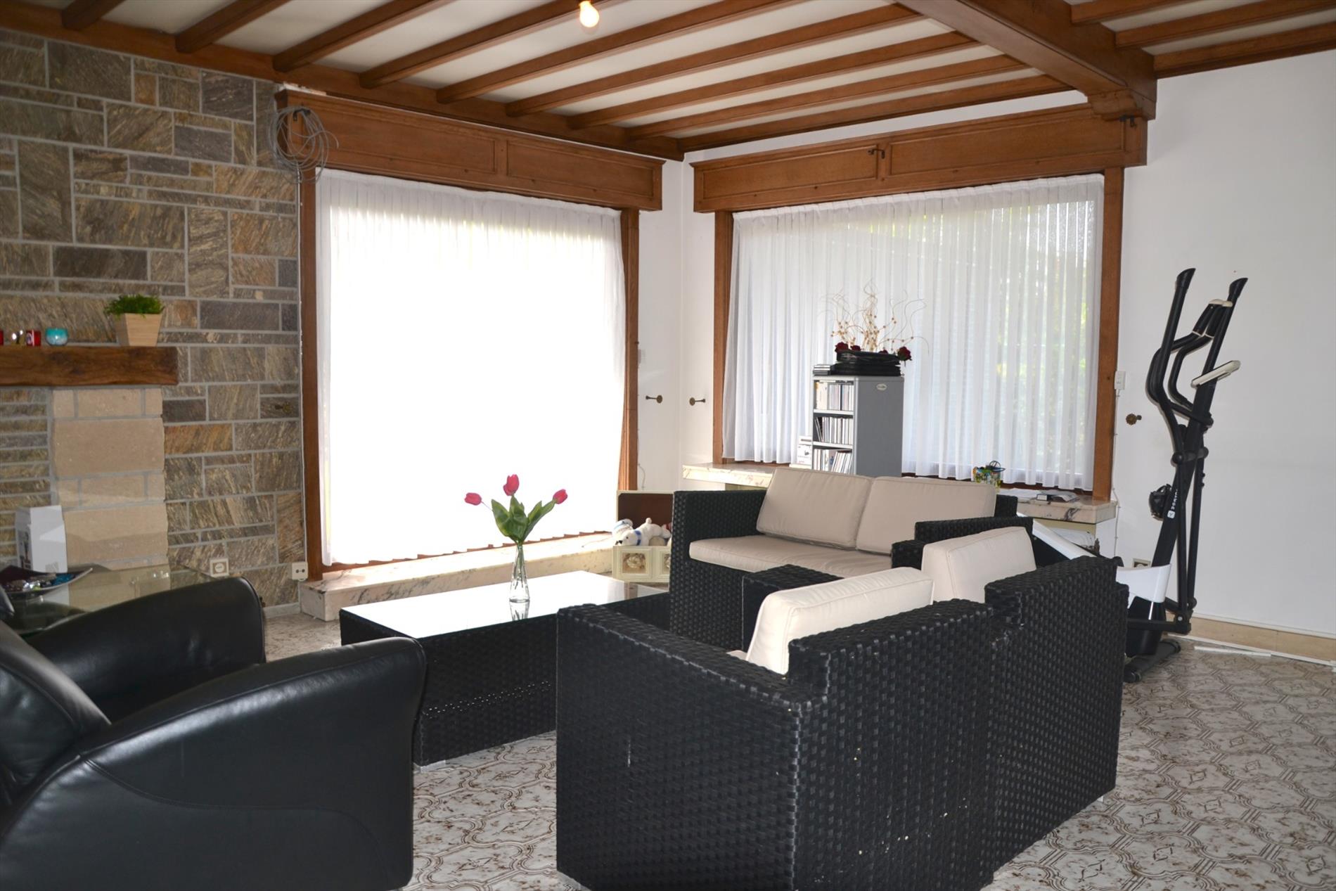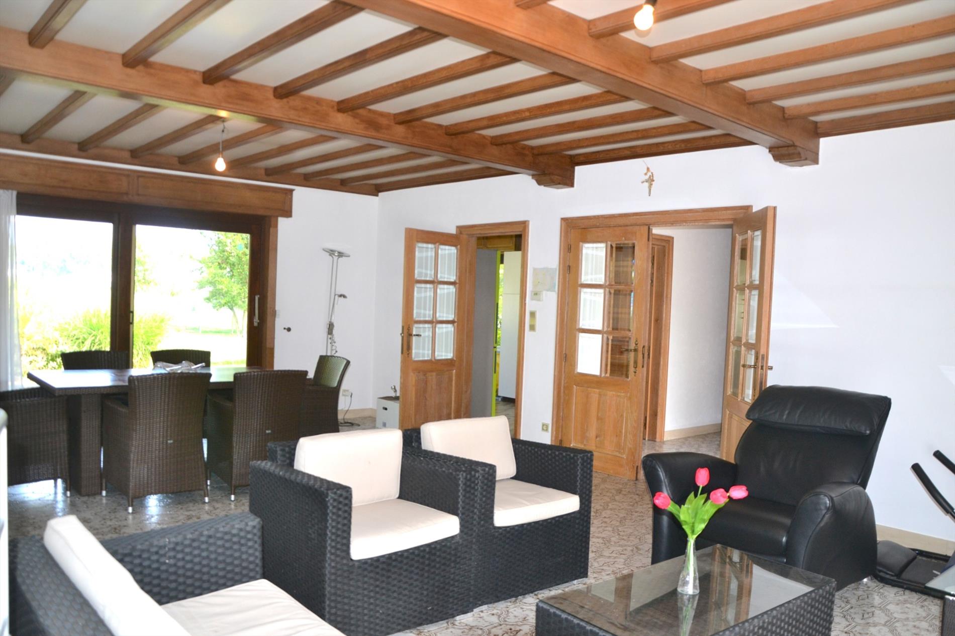 Deze gelijkvloerse ruime woning bestaat uit een inkomhal die leidt naar de lichtrijke leefruimte en keuken.