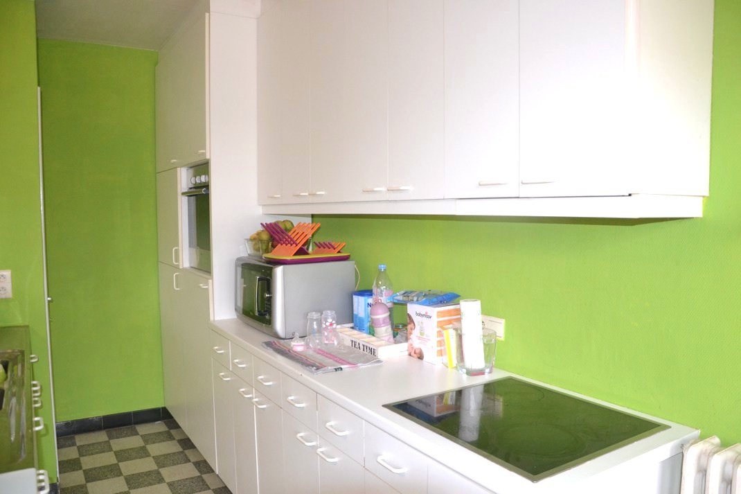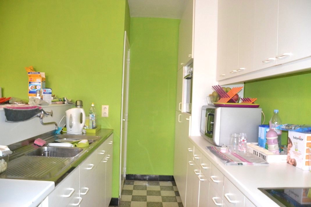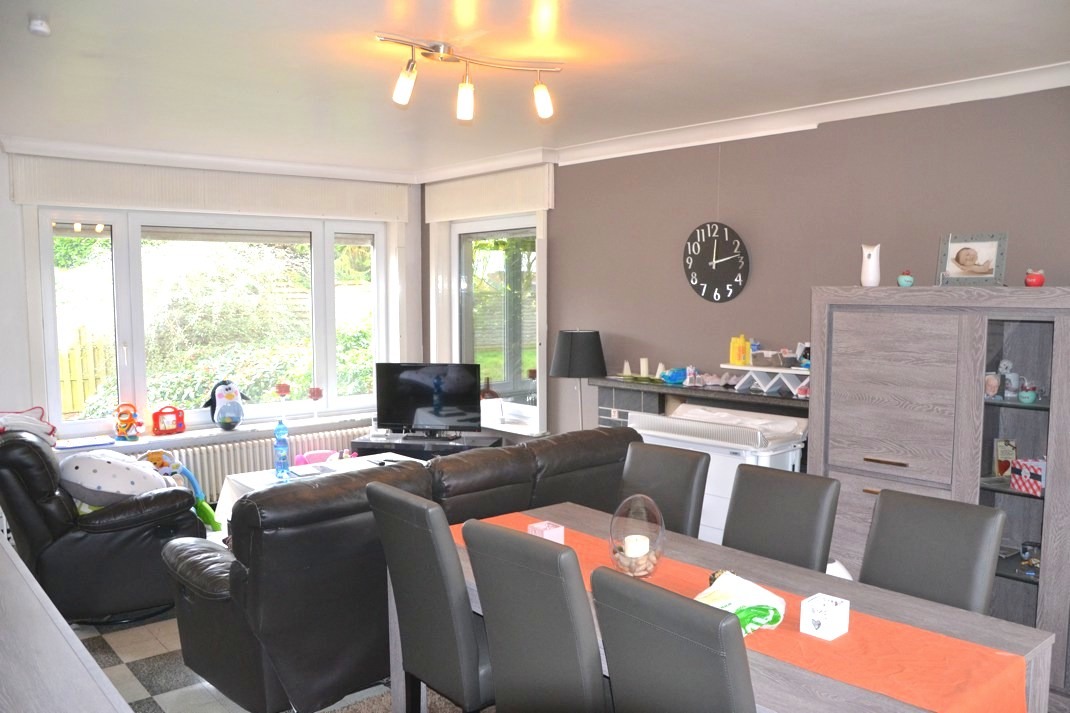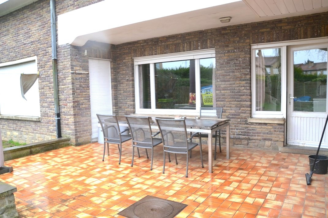 De keuken grenst enerzijds aan de grote kelder en anderzijds, aan het brede en zonnig terras met grote tuin.