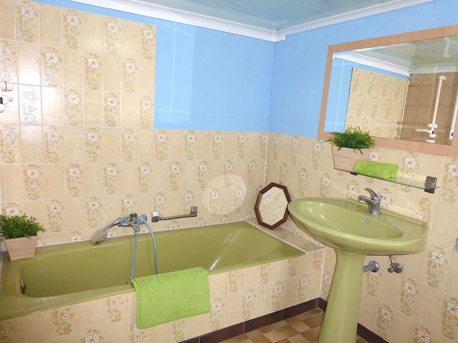Verder vinden we op het gelijkvloers nog 2 bergingen en de badkamer met toilet, lavabo en ligbad.