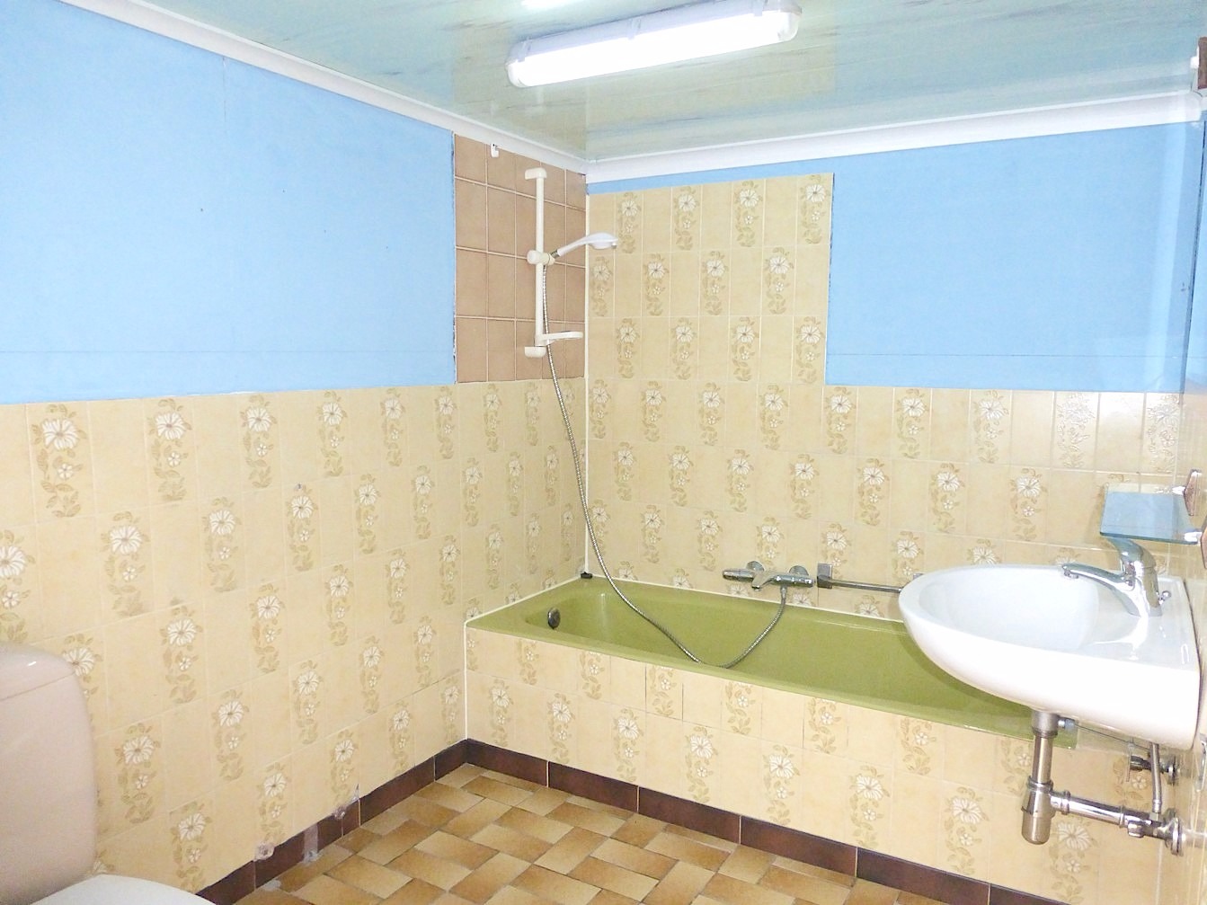 Verder vinden we op het gelijkvloers nog 2 bergingen en de badkamer met toilet, lavabo en ligbad.