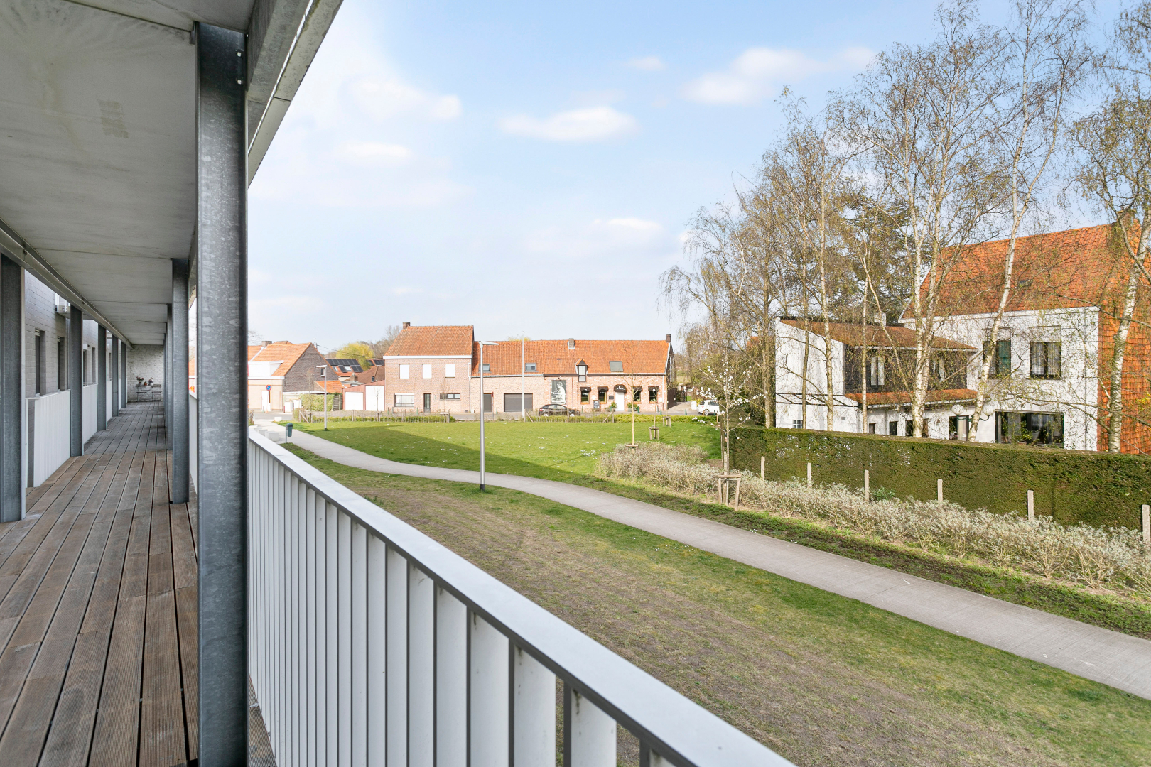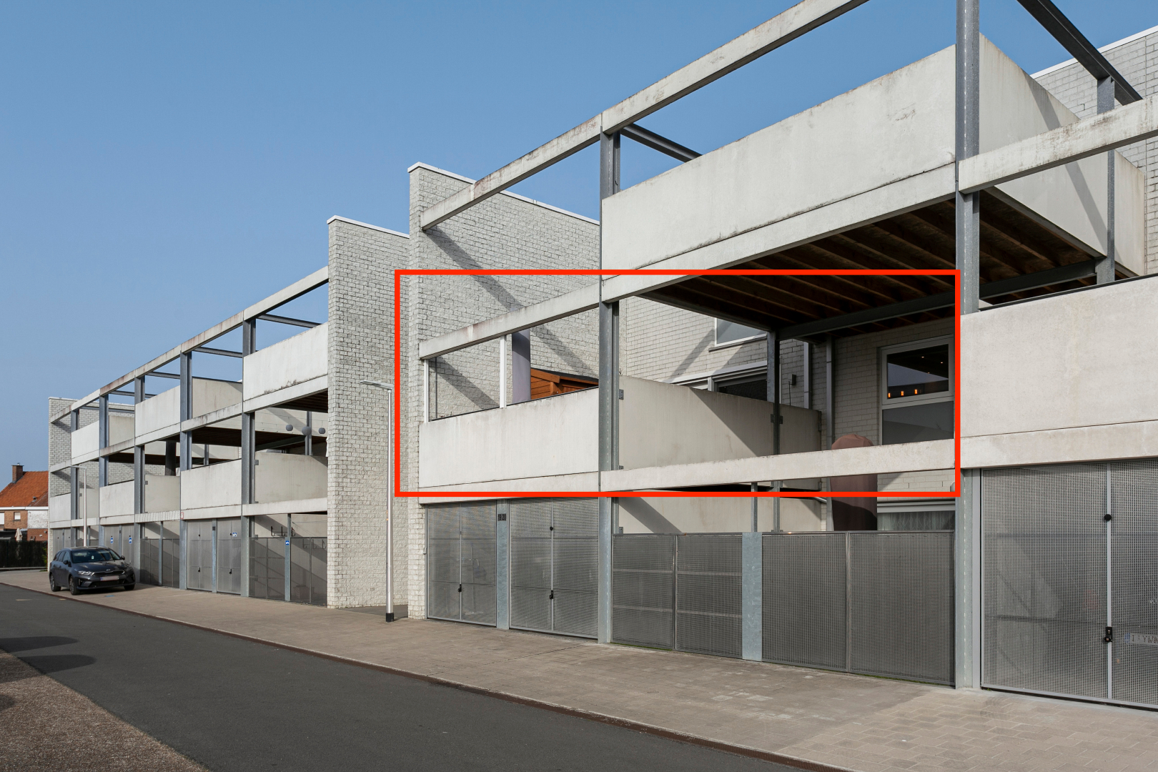 In een rustige straat draaien we af naar een plein met in het midden tal van parkeerplaatsen en rondom recente appartementen en woningen. We parkeren onze wagen in de vrij te gebruiken parkeerstroken of rijden de garage binnen die bij het appartement hoort.
