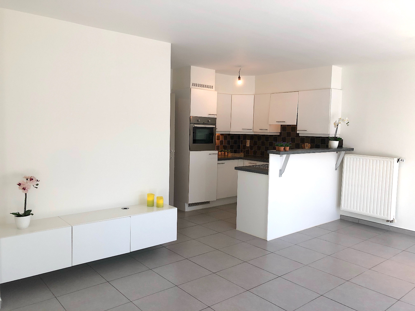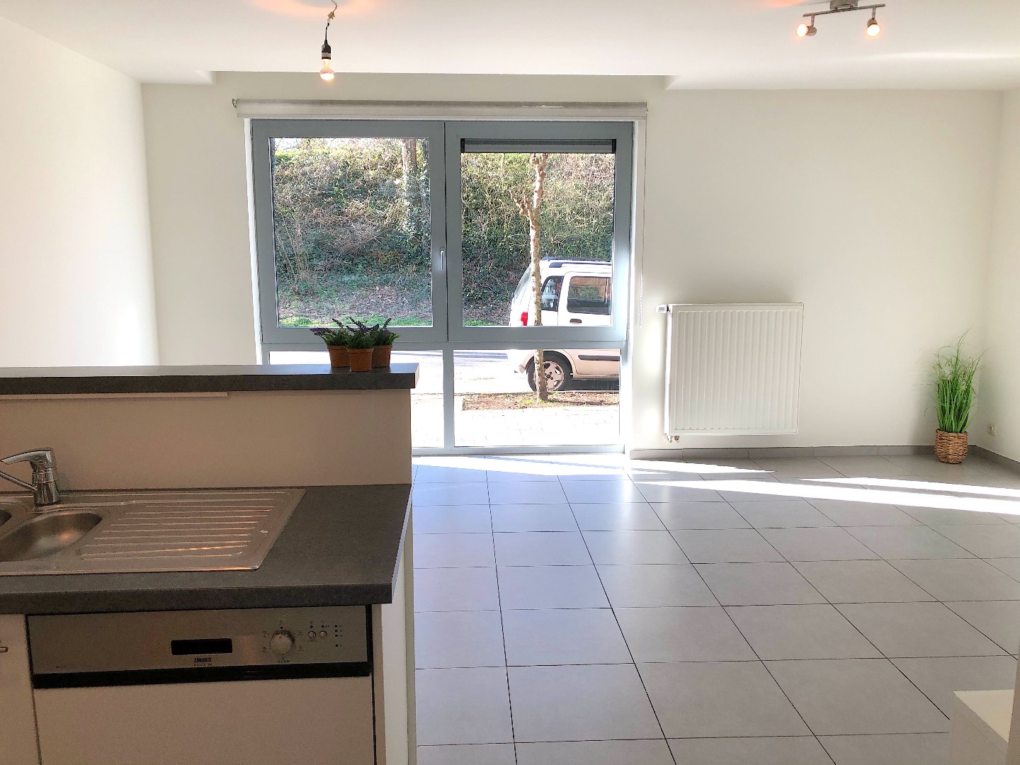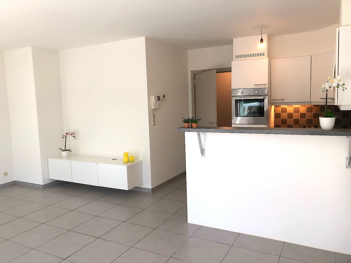 We komen de verzorgde residentie "Hofstede" binnen om verder te gaan naar de private inkomhal van het appartement. Er is een apart gastentoilet en plaats voor een vestiaire. De living is lichtrijk door het grote raam, waar door de goede oriëntatie de zon binnen komt piepen. De open keuken, die voorzien is van alle comfort, zorgt voor een leuk contact met de leefruimte.
