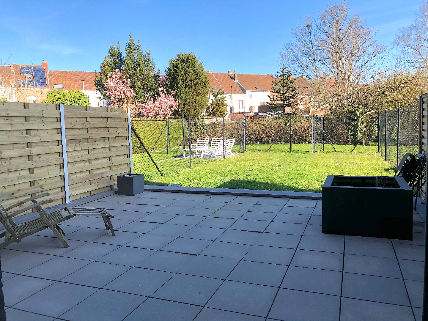 Achteraan is er een superleuke tuin met zeer groot terras. Er is tevens een poortje, waardoor we naar de mooie gemeenschappelijke tuin kunnen.