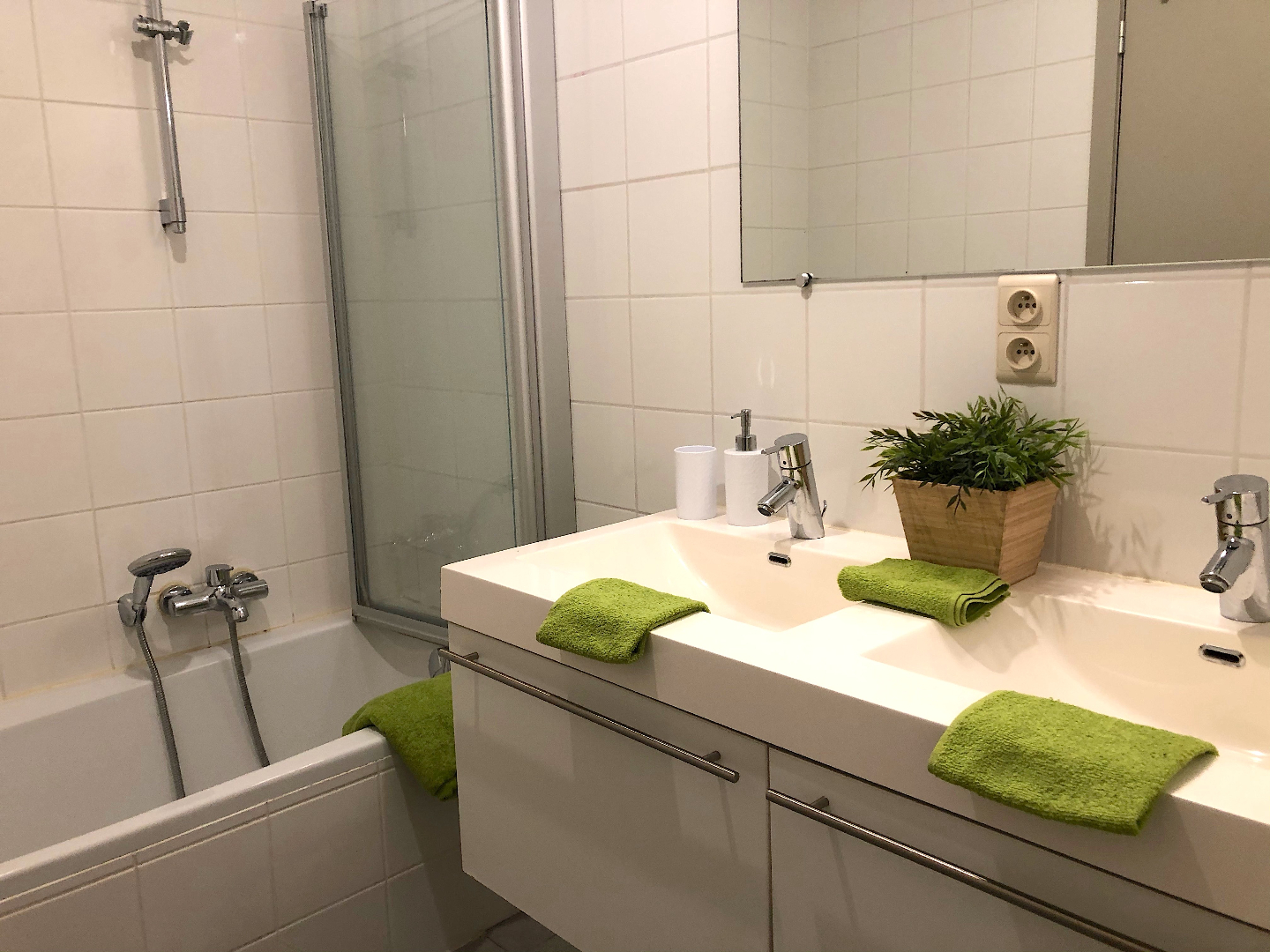 Verder vinden we nog de 2 slaapkamers en de badkamer, die beschikt over een dubbele lavabo en ligbad.