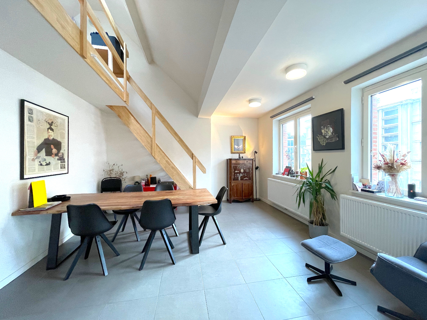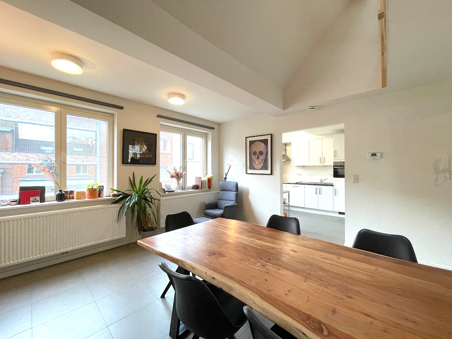 Op de tweede verdieping van dit kleinschalig blokje bevindt zich dit uiterst gezellige, lichtrijke appartement. Het is er heel rustig.