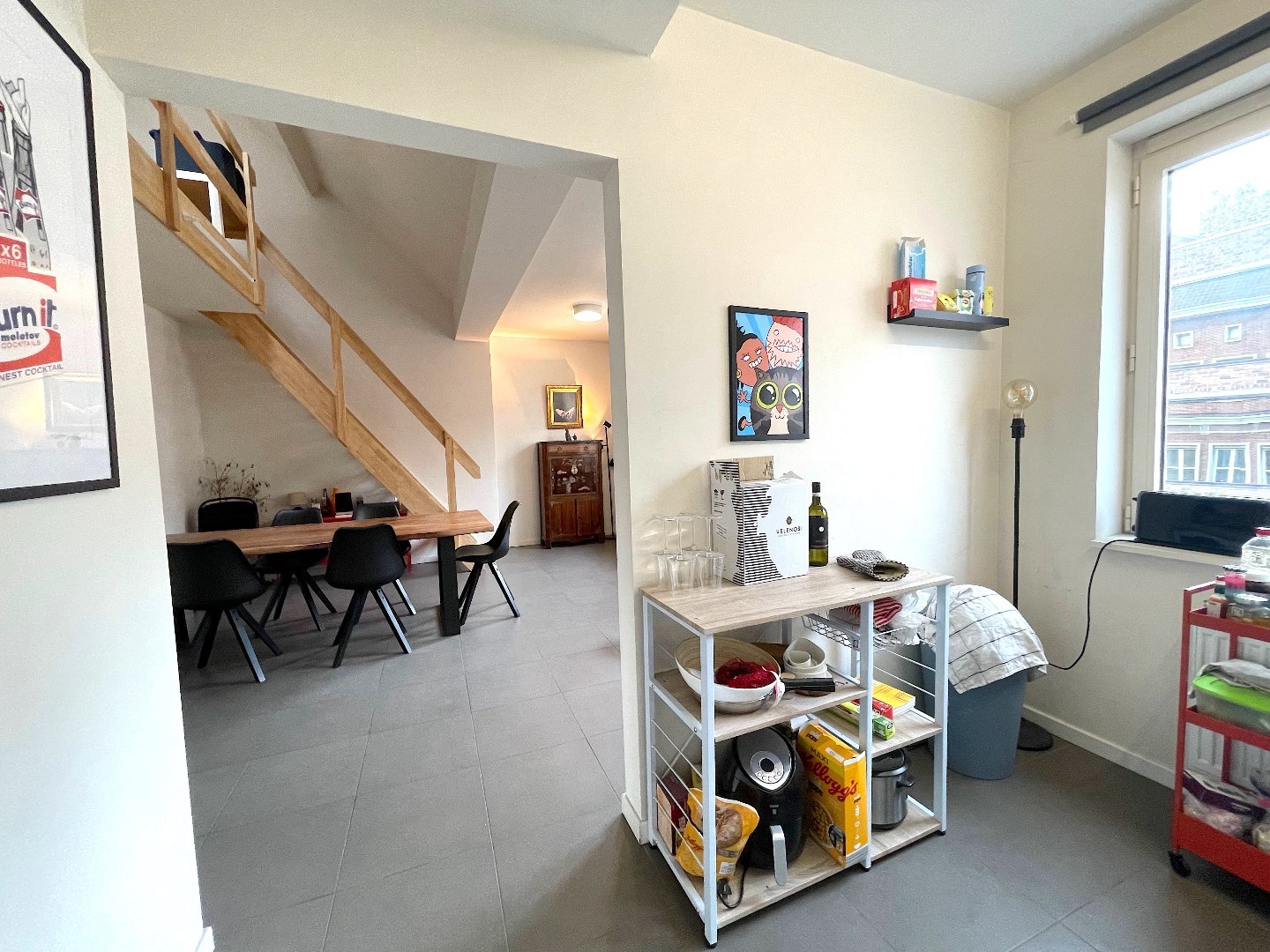 Op de tweede verdieping van dit kleinschalig blokje bevindt zich dit uiterst gezellige, lichtrijke appartement. Het is er heel rustig.