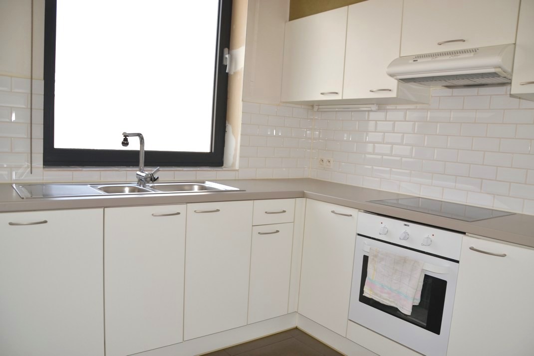 Vanuit de inkomhal met apart gastentoilet is er aansluiting op de ruime leefruimte, die uitkijkt op het zonnige terras. De halfopen, met toestellen ingerichte keuken ligt om de hoek, zodat rechtstreekse inkijk in de keuken uitgesloten is.