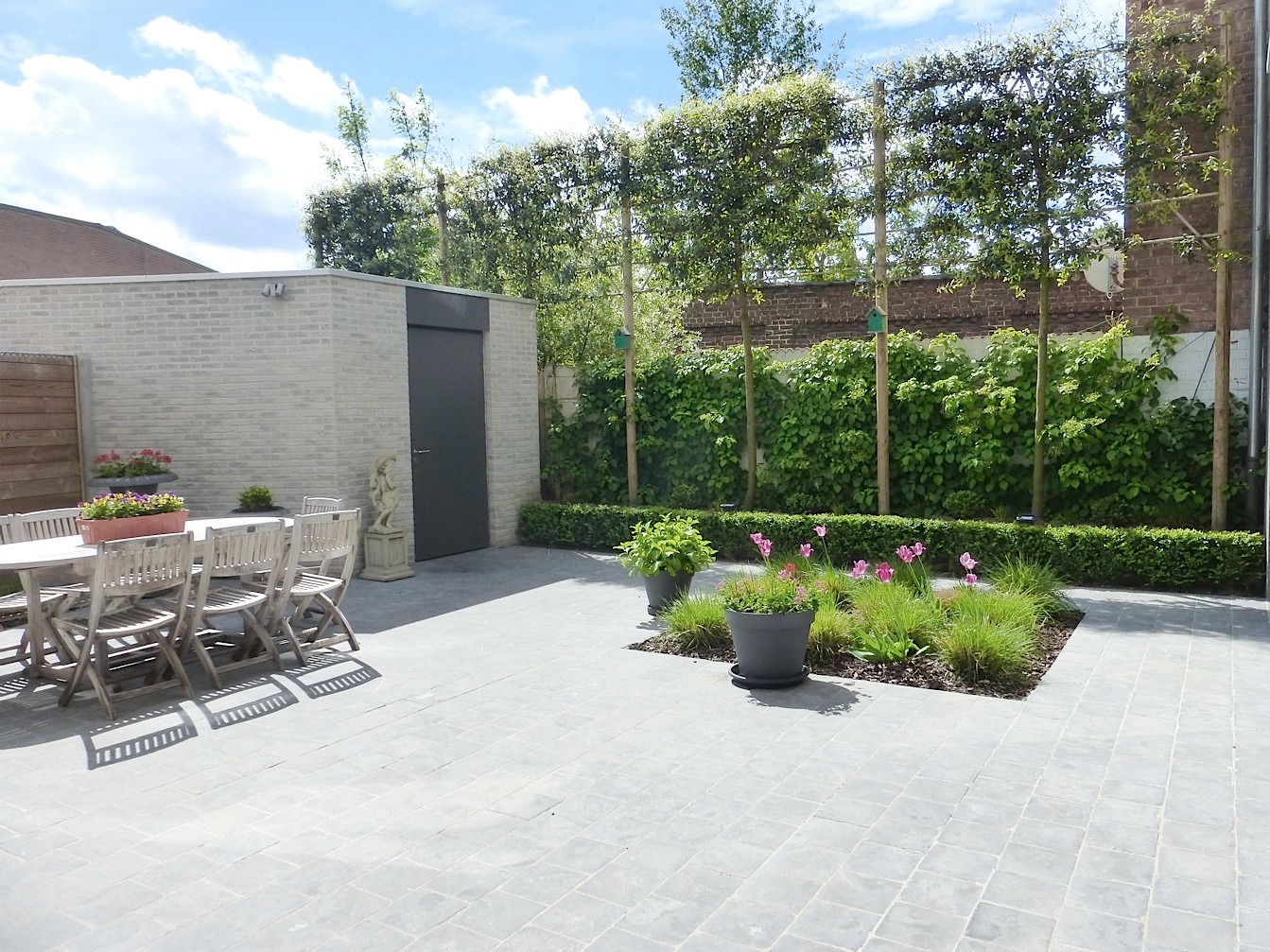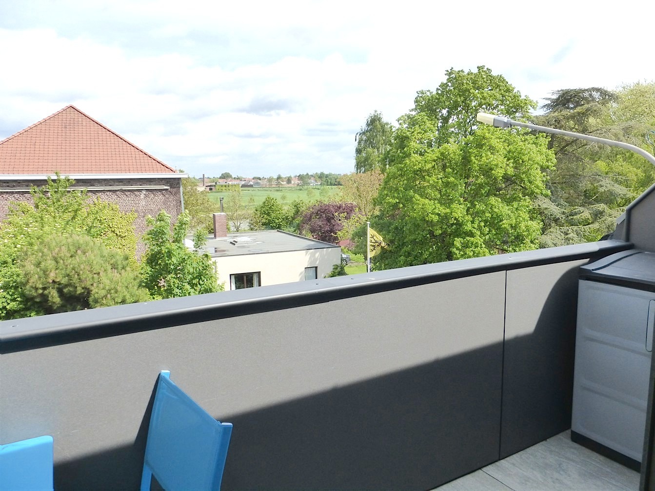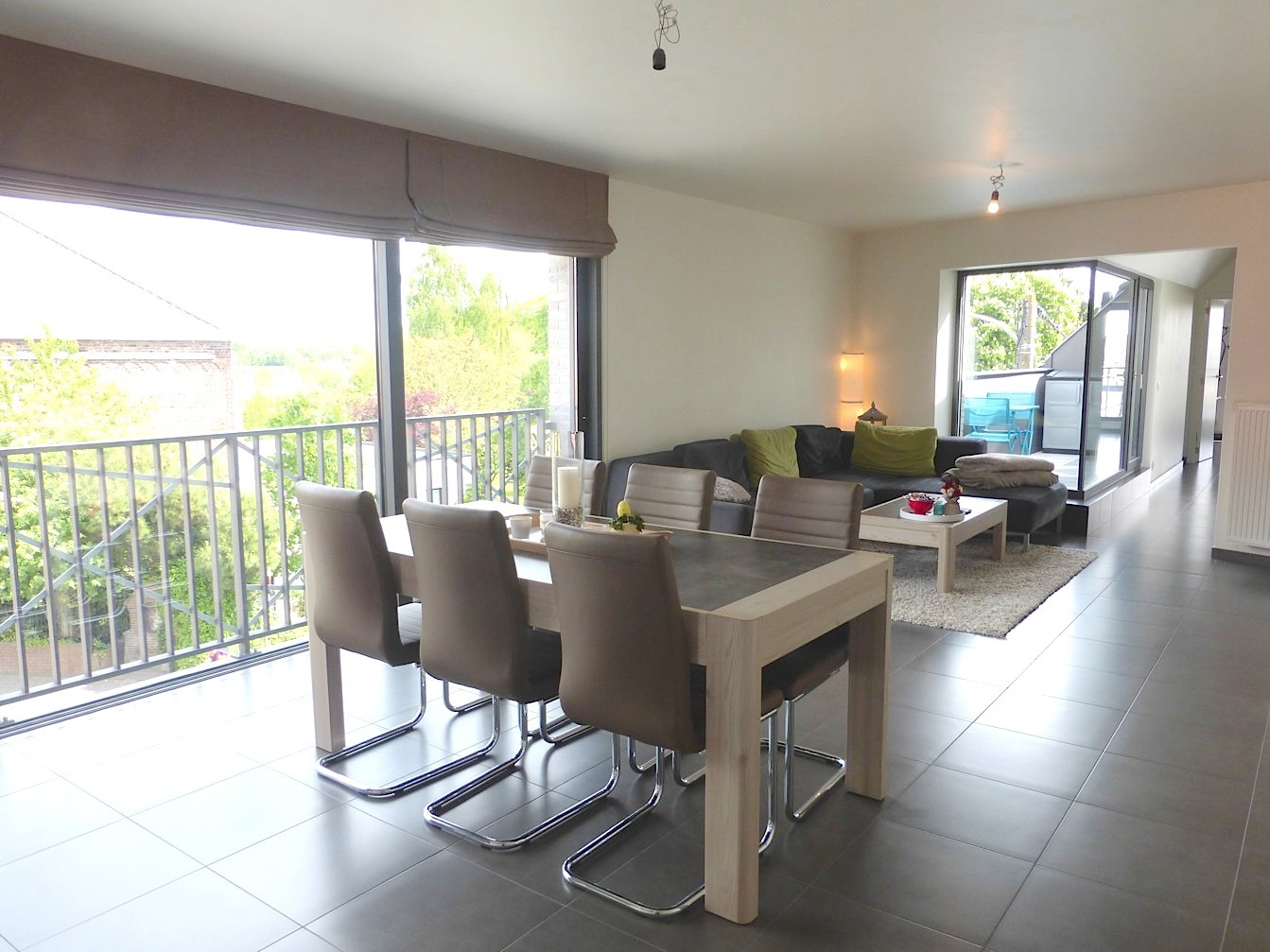 Aan de living grenst een aangenaam terras met zicht op de Leieboorden.