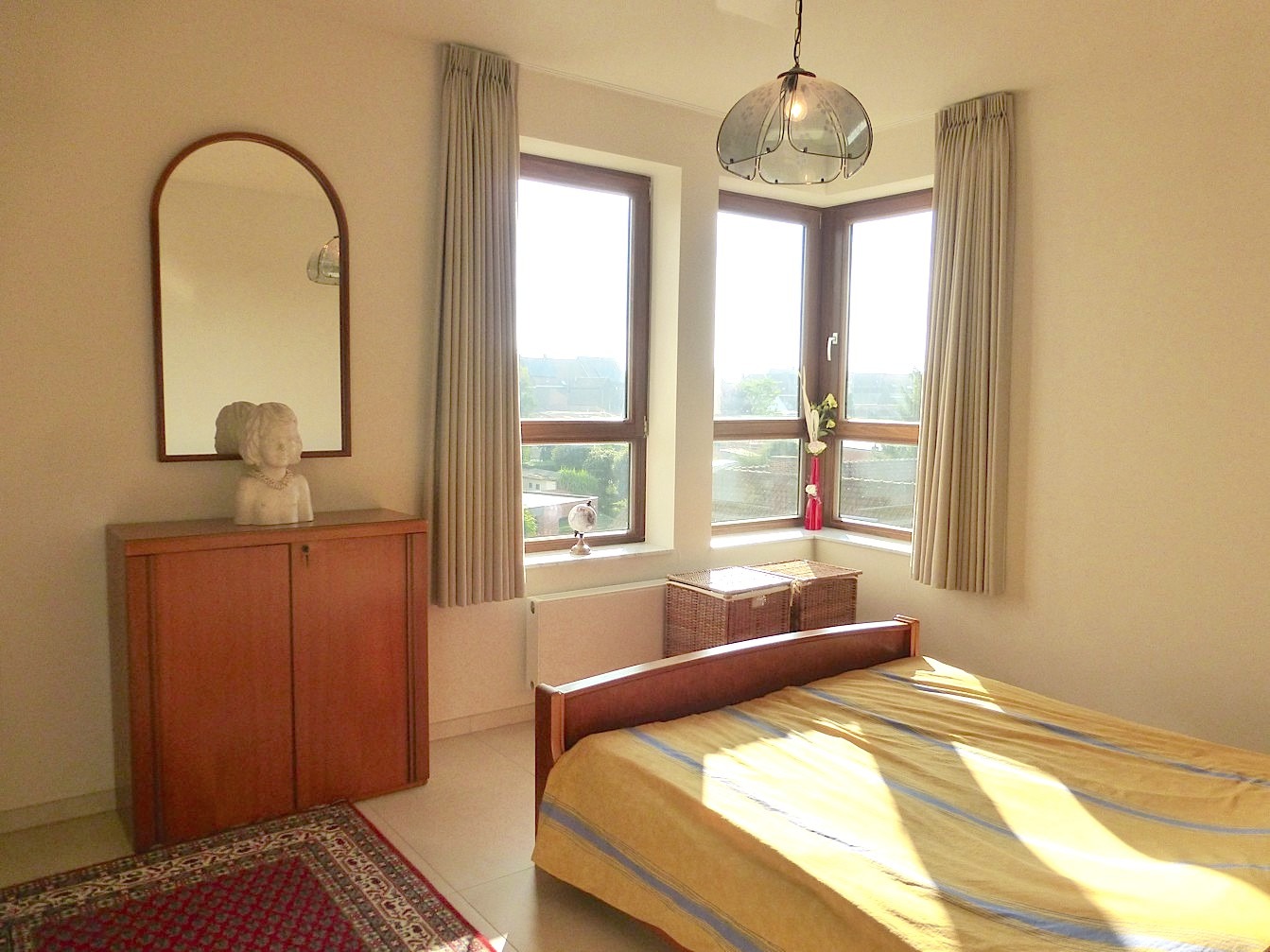 Aan de achterzijde van het appartement zijn er 2 slaapkamers, waarvan 1 met ingemaakte kasten. De mooie badkamer is voorzien van een lavabomeubel en ligbad. Het toilet is apart.