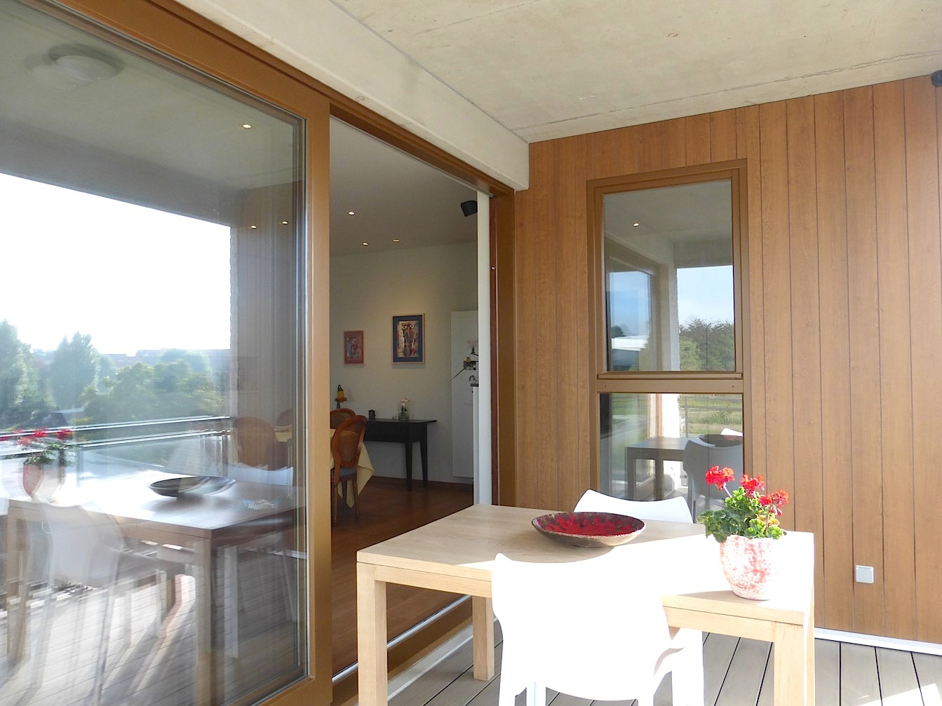 De living grenst aan een terras met perfecte ZW-oriëntatie en zijdelings Leiezicht. Het is hier tot in de late uurtjes genieten in het zonnetje.