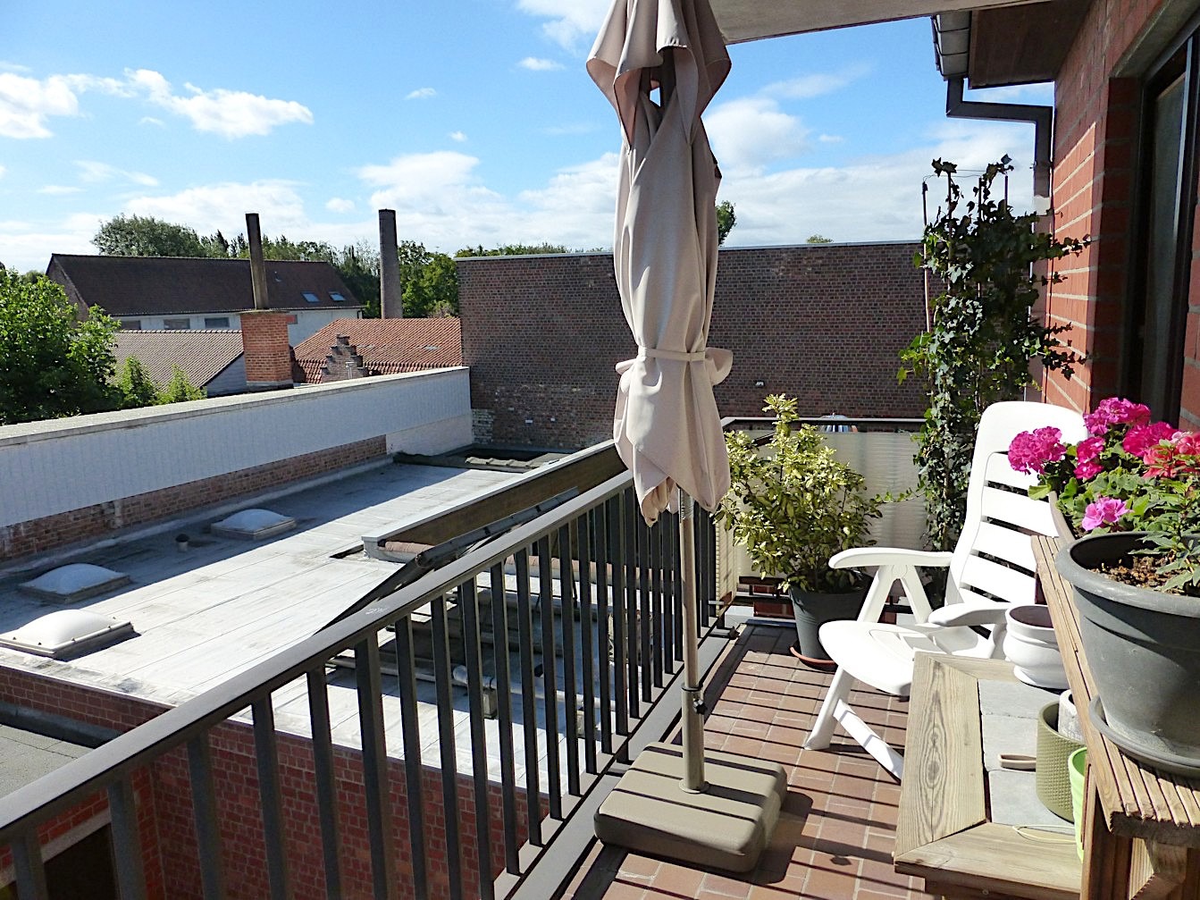 Via de lift gaan we naar de 2e verdieping van deze verzorgde residentie. We komen het appartement binnen in de hal met apart toilet. Langs de voorkant vinden we de living met balkon. Van hieruit kijken we naar "Lauweplaats". Aangrenzend is er een ingerichte keuken met handige berging. Achteraan vinden we 2 slaapkamers en een badkamer met lavabo en bad/douche combinatie. Er is tevens een terras waar we kunnen genieten van de zon.