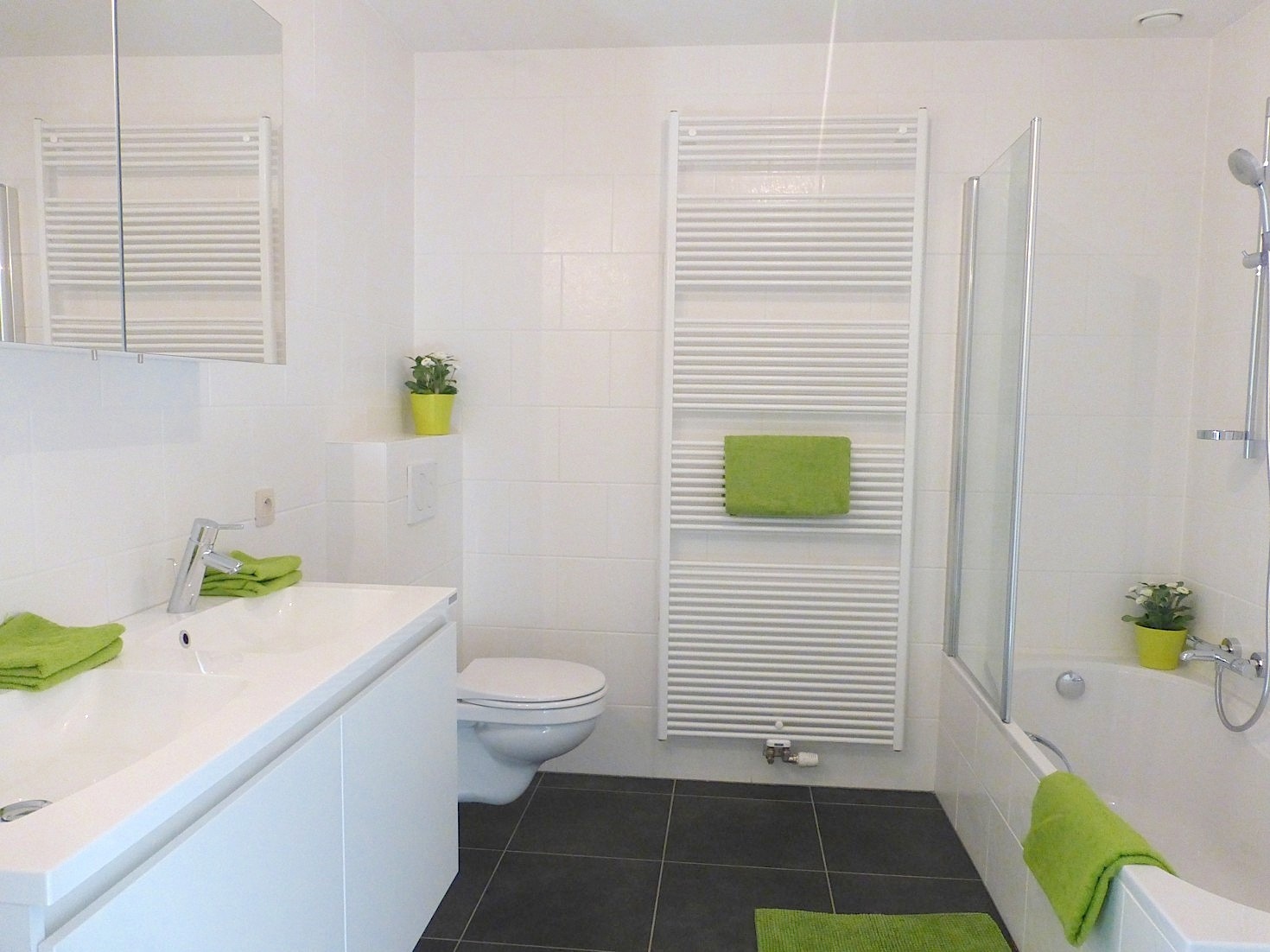 De 2e verdieping is voorzien van een volledig ingerichte badkamer (dubbel lavabomeubel, toilet, bad/douche combinatie), 1 slaapkamer met aparte dressing en nog 2 volwaardige slaapkamers.