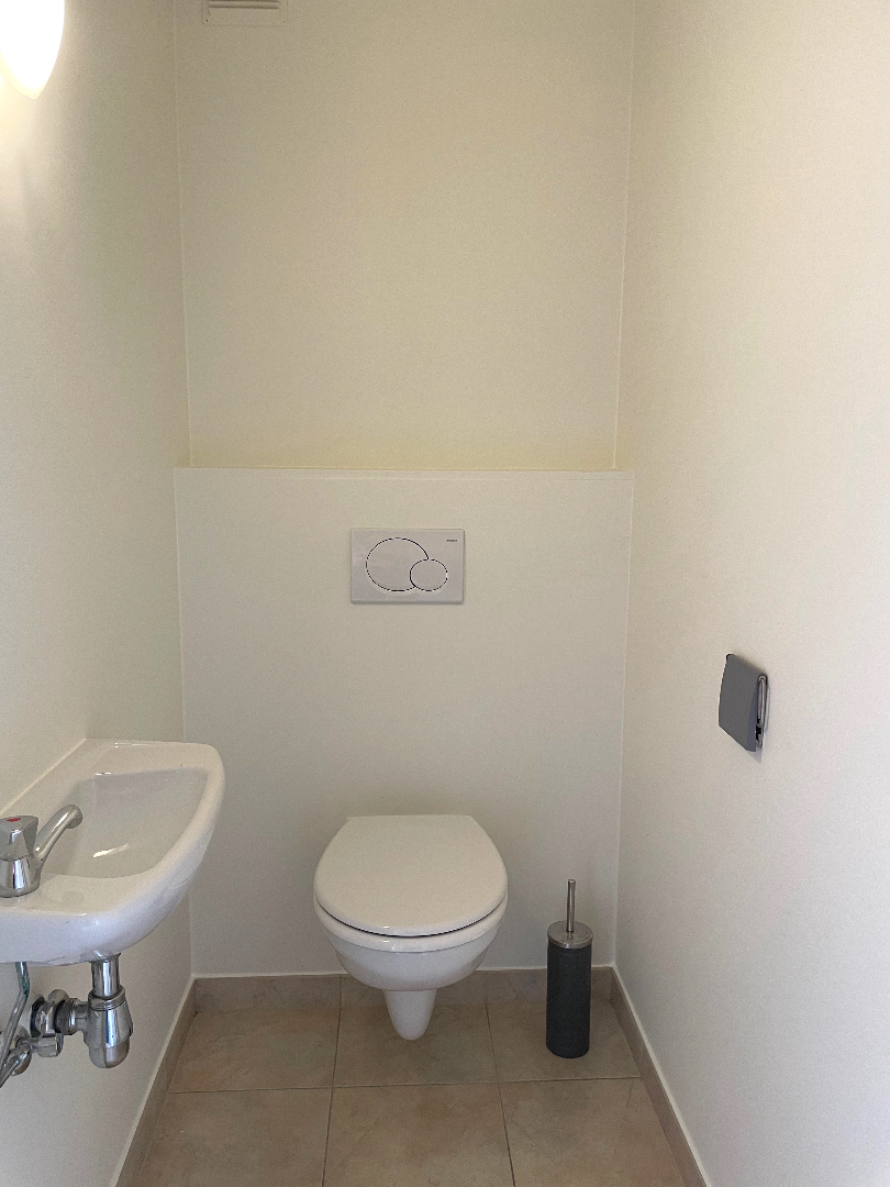 Achteraan zijn er 2 slaapkamers. De badkamer beschikt over een lavabo en ligbad dat eveneens als douche kan gebruikt worden. De handige berging biedt ruimte aan een wasmachine en/of droogkast.