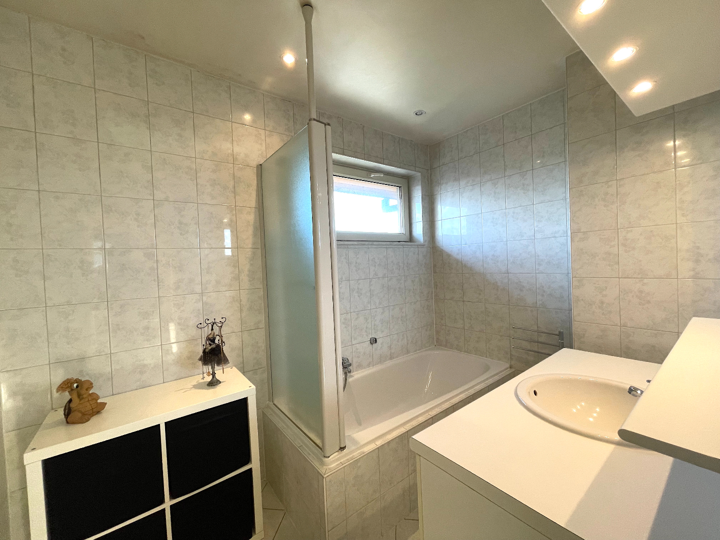 Het appartement beschikt over 2 slaapkamers. De badkamer heeft een lavabo en ligbad dat eveneens als douche kan gebruikt worden.