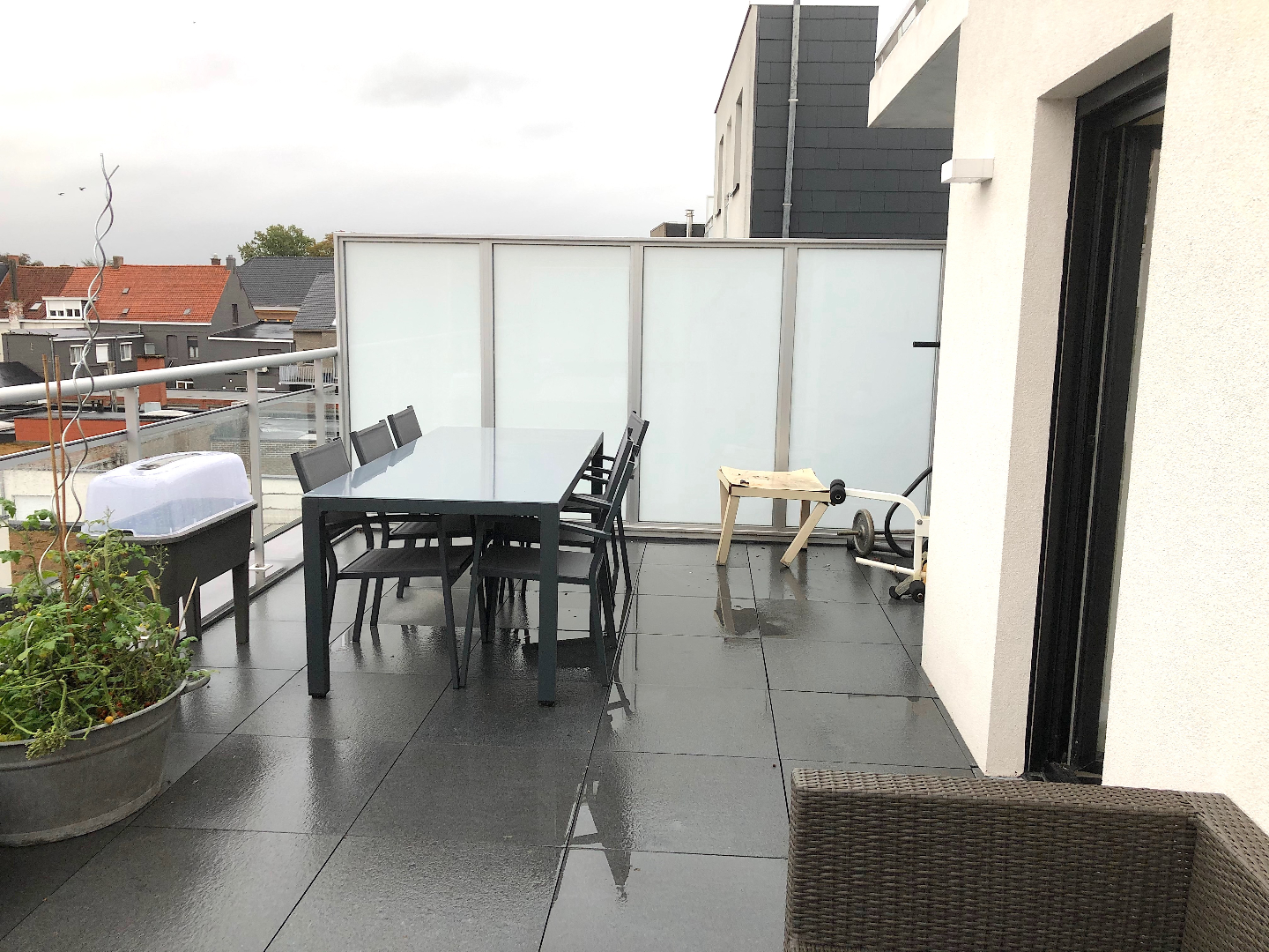 Achteraan vinden we de 2 slaapkamers. De badkamer is voorzien van een lavabomeubel en een inloopdouche. Verder is er nog een apart gastentoilet. Achteraan is er een gigantisch terras van liefst 30 m²!