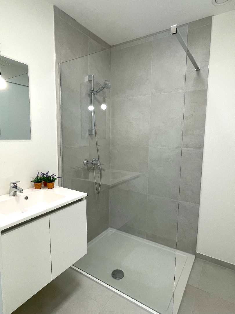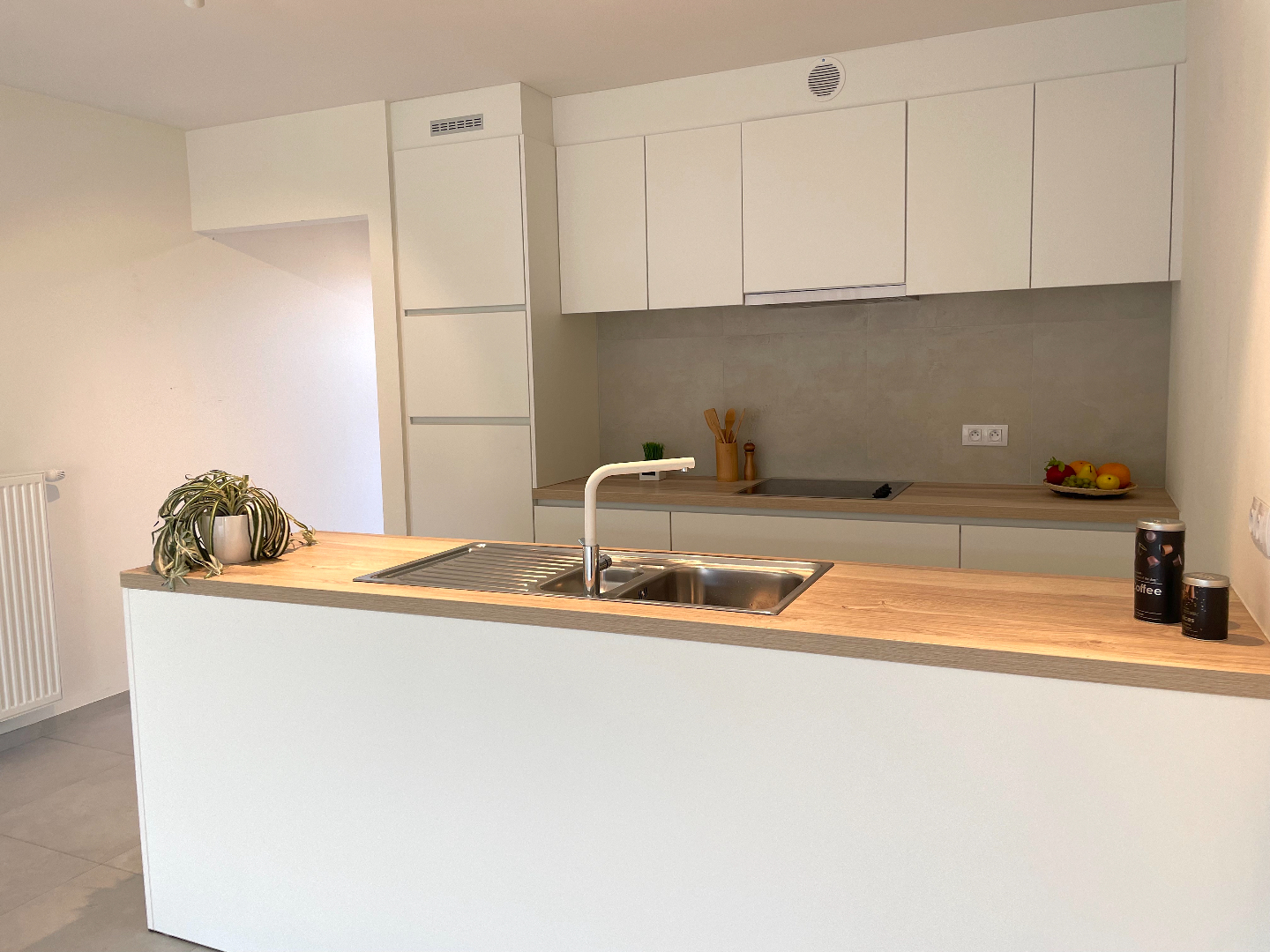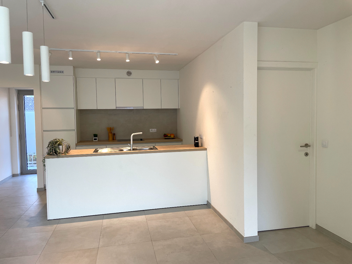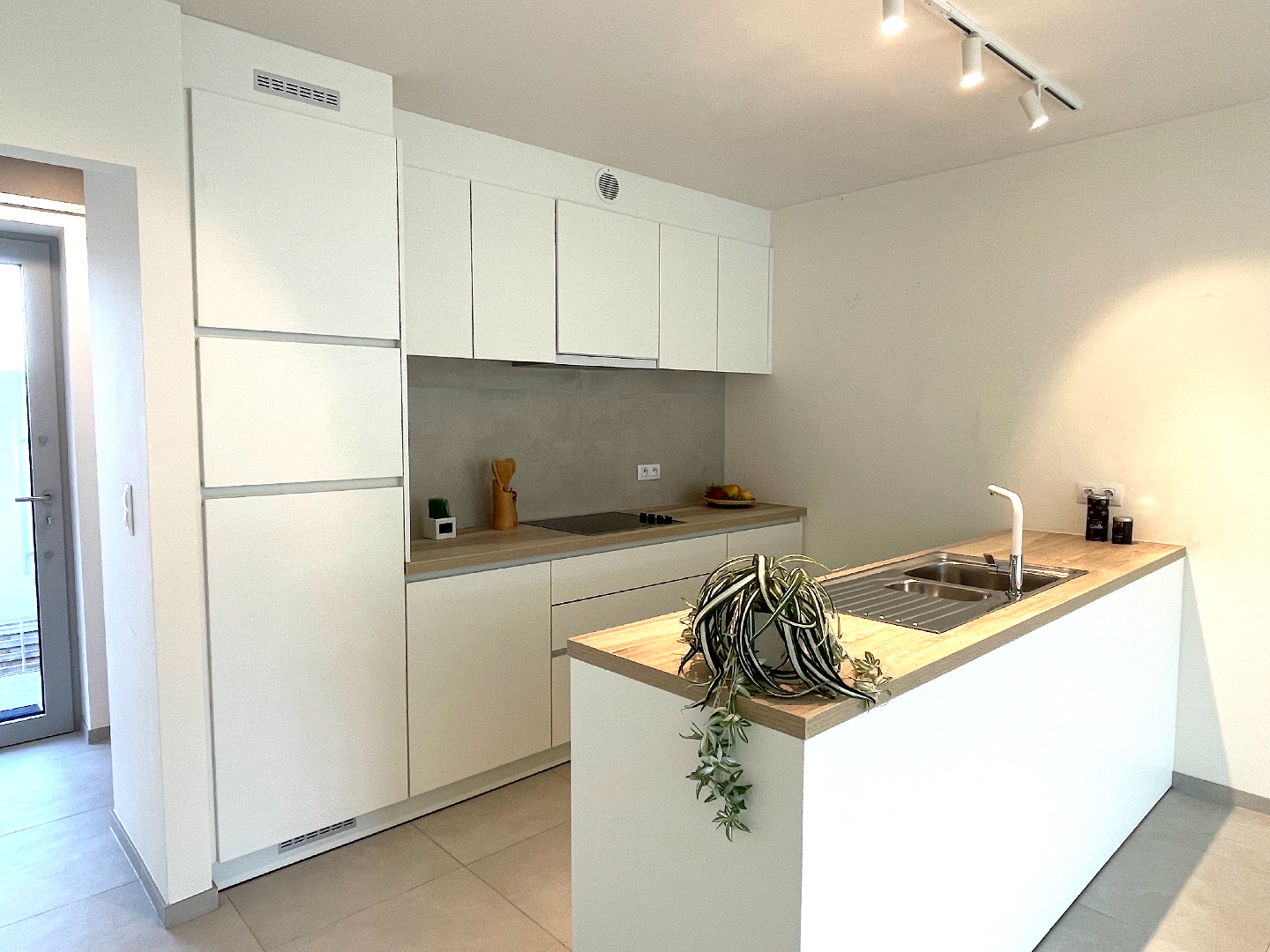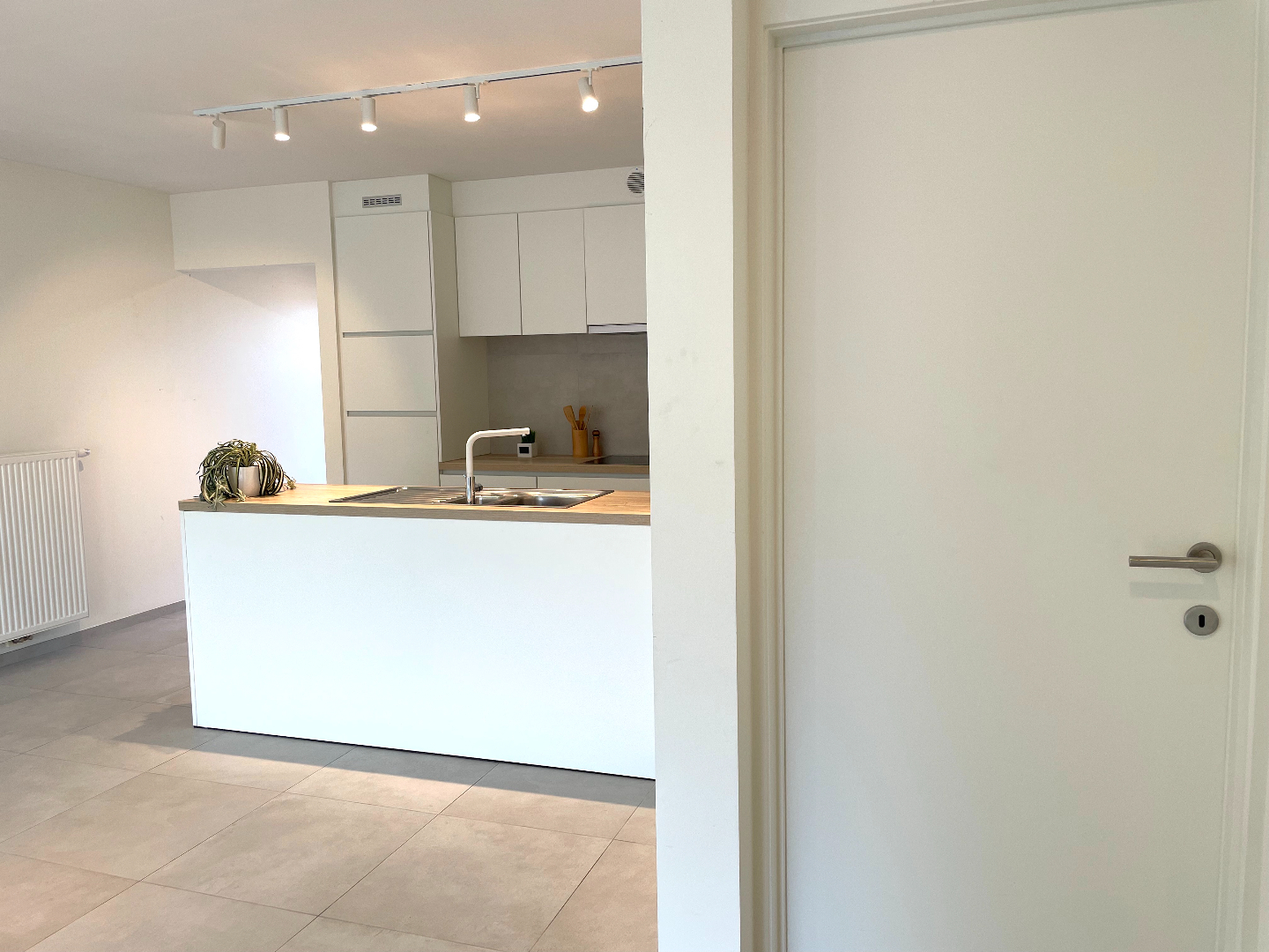 In de inkomhal is er een apart toilet. Vervolgens stappen we de aangename leefruimte met open keuken binnen. Langs de voorzijde treffen we er het zongerichte terras met zonneluifel. Er zijn in het appartement twee mooie slaapkamers en een berging waar u de wasmachine en droogkast kwijt kan. De badkamer beschikt over een inloopdouche en lavabo.
