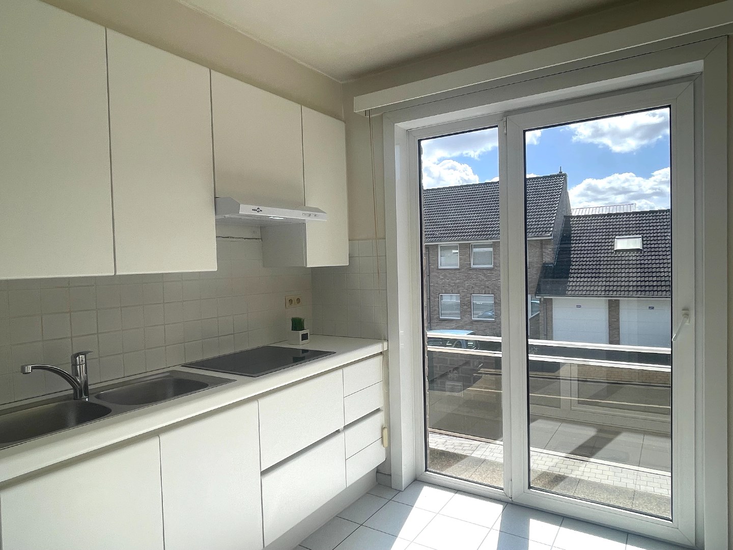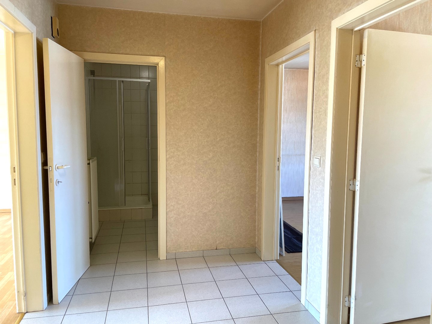 Via de lift gaan we naar de 1e verdieping van deze kleine residentie. We komen het appartement binnen in de hal met apart toilet. Van hieruit is er ook toegang tot de slaapkamers, de badkamer en de leefruimte. De badkamer beschikt over een lavabo en douche. Langs de achterzijde zijn er 2 ruime slaapkamers. Vanuit één slaapkamer is er toegang tot het terras achteraan. Op dit terras is er ook een handige berging. Langs de voorkant vinden we de lichtrijke living met aansluitend de keuken met klein terras. Aangrenzend aan de keuken is er een handige berging met wasverzachter.