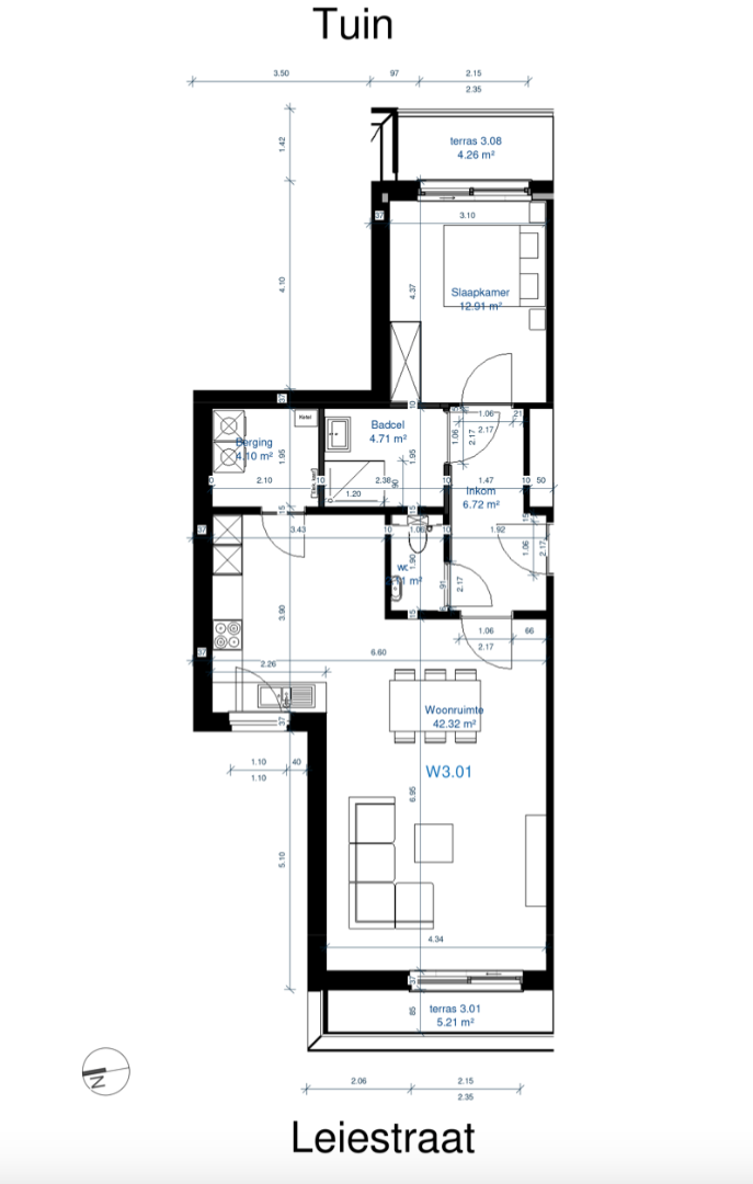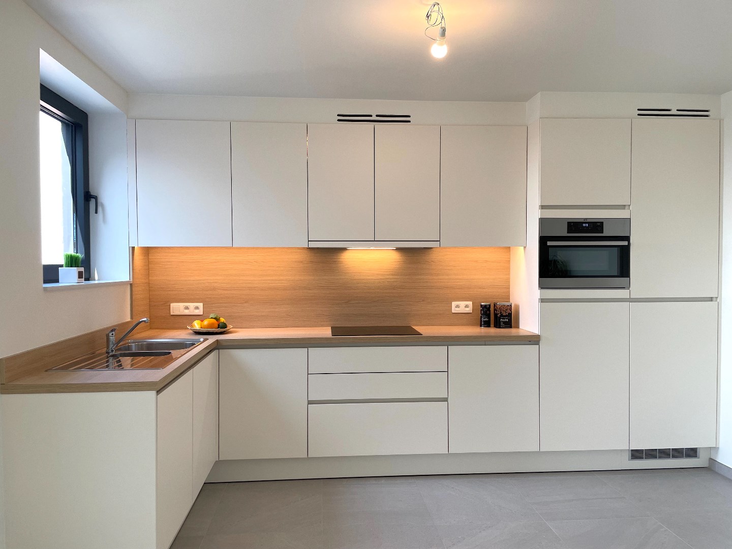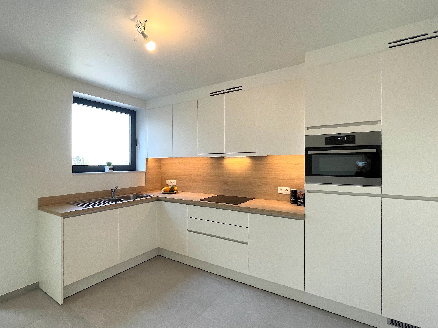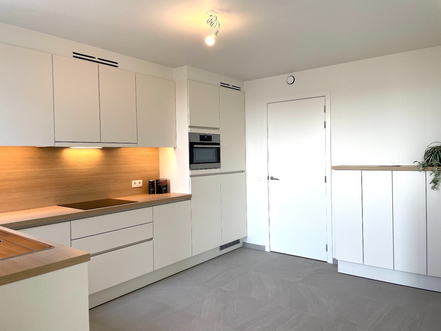 De prachtige architectuur van de buitenkant van deze residentie is ook doorgetrokken naar de binnenzijde van het appartement. Het appartement is heel lichtrijk en bevindt zich aan de straatkant. Vanaf het terras langs de voorzijde heeft u een zicht op wat zich in het centrum van Lauwe afspeelt. Langs de kant van de slaapkamer heeft u ook zicht op het park.