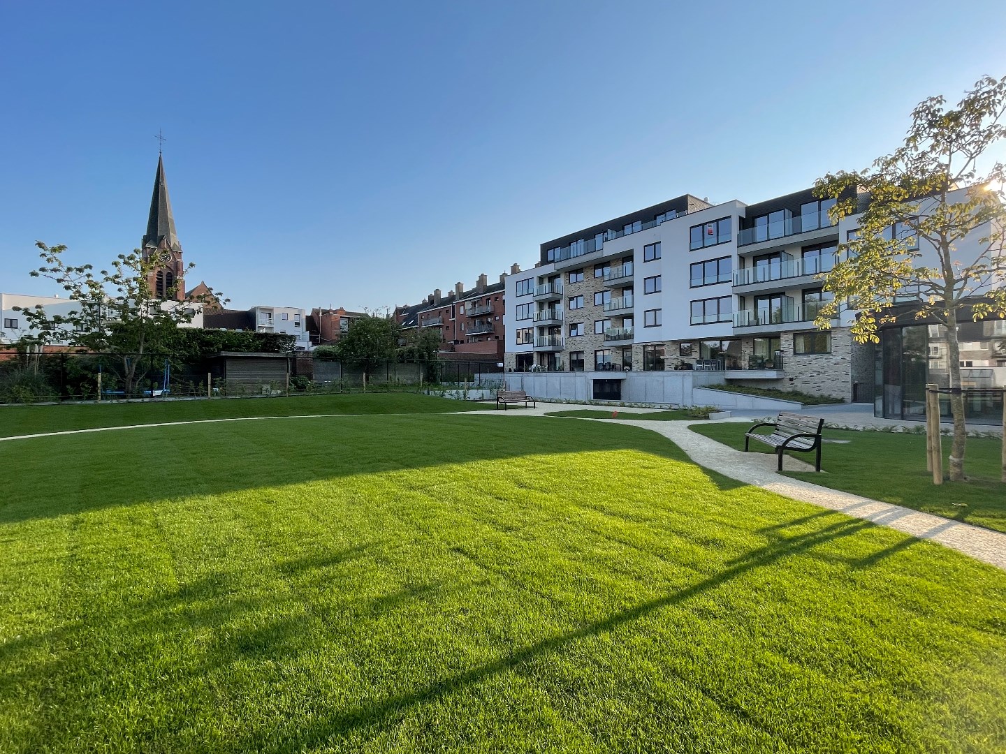 De grote, groene tuin is het paradepaardje van dit unieke woonconcept. U kan er zalig genieten van de wandelpaden en de petanquebaan.