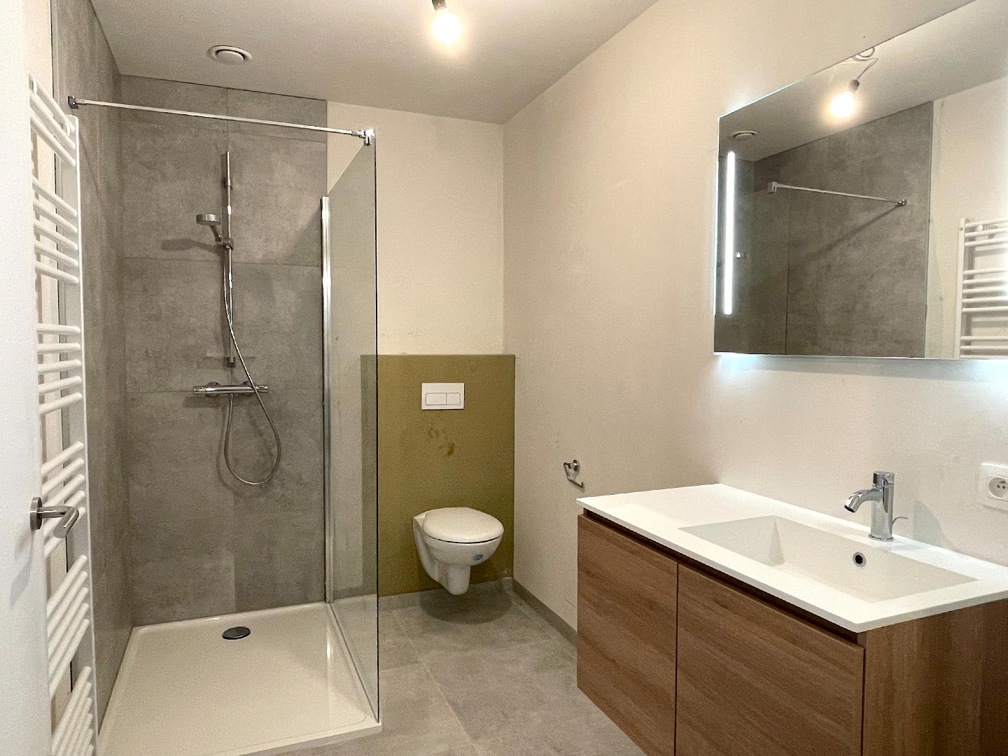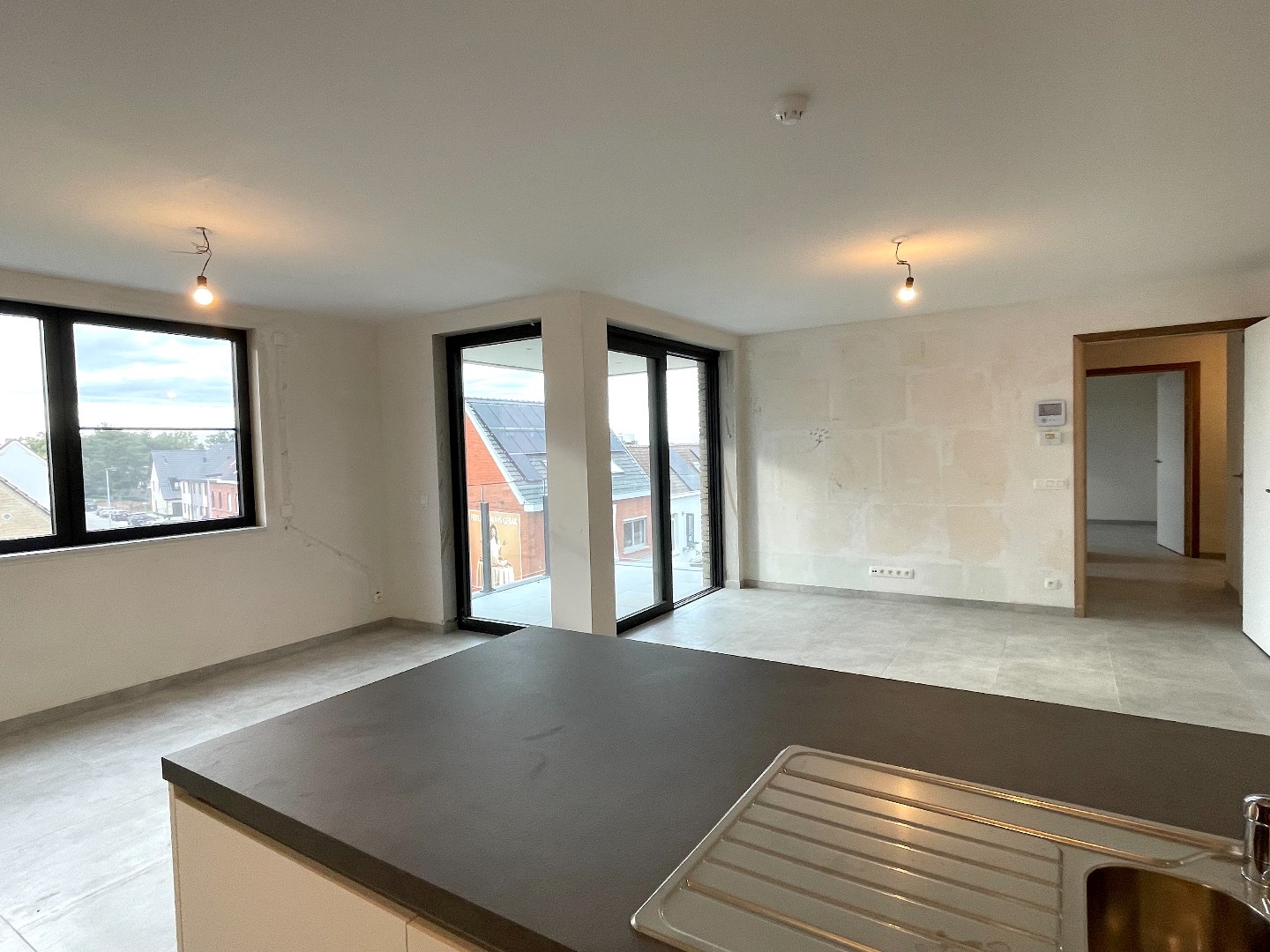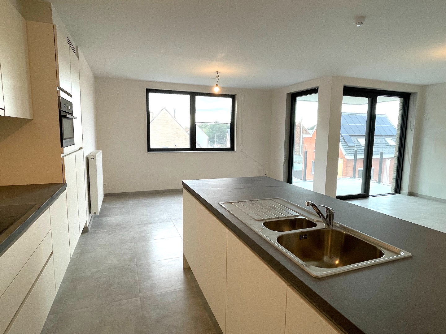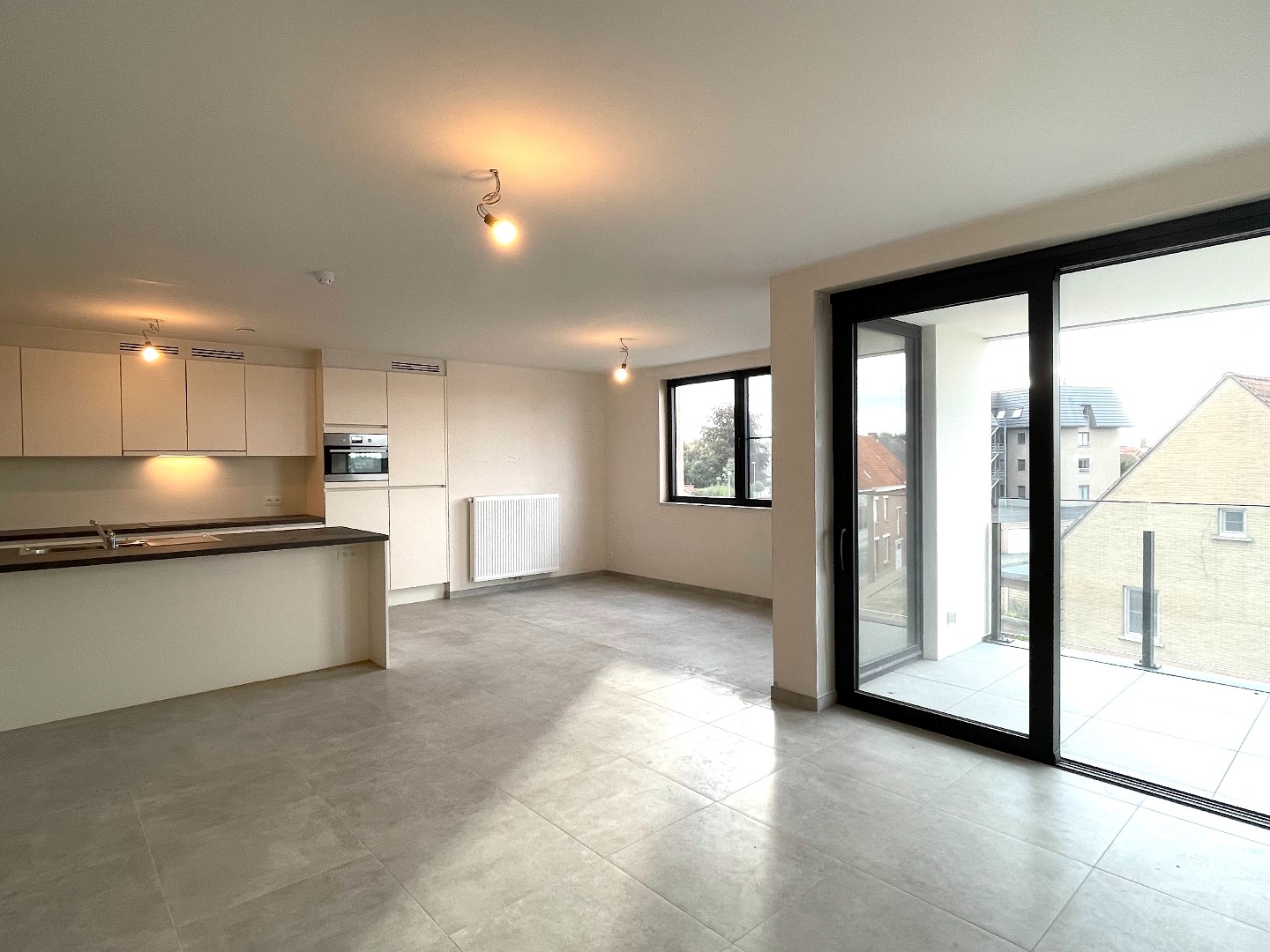De prachtige architectuur van de buitenkant van deze residentie is ook doorgetrokken naar de binnenzijde van het appartement. Het appartement is heel lichtrijk en bevindt zich aan de straatkant. Vanaf het terras heeft u een goed zicht op het centrum en de Leiekant.