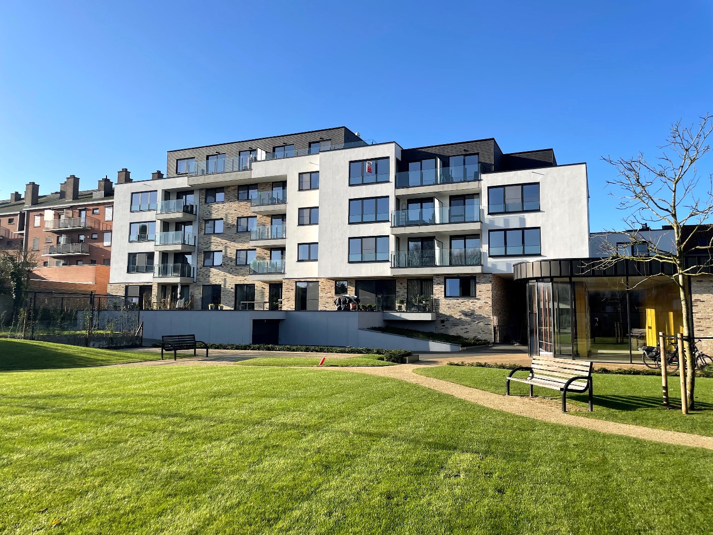 De prachtige architectuur van de buitenkant van deze residentie is ook doorgetrokken naar de binnenzijde van het appartement. Het appartement is heel lichtrijk en bevindt zich aan de straatkant. Vanaf het terras heeft u een goed zicht op wat zich in het centrum van Lauwe afspeelt.
