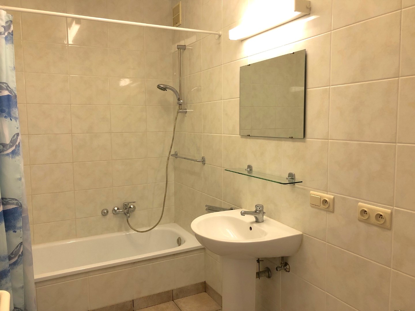 We betreden het appartement rechtstreeks in de living. Deze is ruim, lichtrijk en gaat over in de halfopen keuken. Verder is er een slaapkamer, berging, apart toilet en een badkamer met ligbad en lavabo.