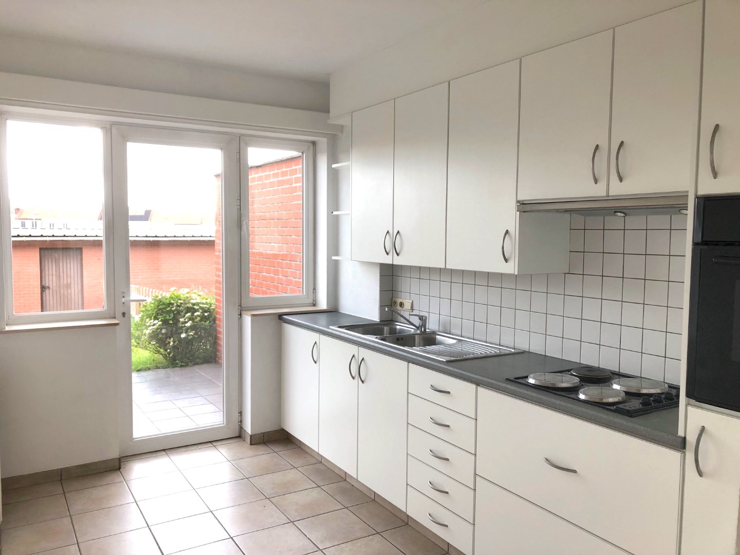 Via de keuken kunnen we naar de tuin met terras. Van hieruit kunnen we naar de achterliggende garagebox.