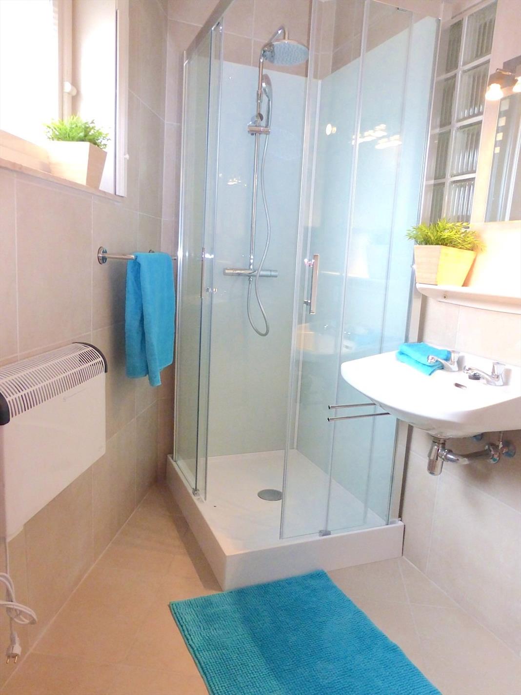 Langs de private ingang komen we via de garage in de hal van het appartement op de eerste verdieping. Hier vinden we een aangename living met aangrenzend de mooi vernieuwde keuken met ijskast, spoeltafel, dampkap en oven. Ook de badkamer is volledig gerenoveerd en voorzien van een lavabo, douche en toilet. Er is tevens een aansluiting voor de wasmachine. Verder is er een ruime slaapkamer.