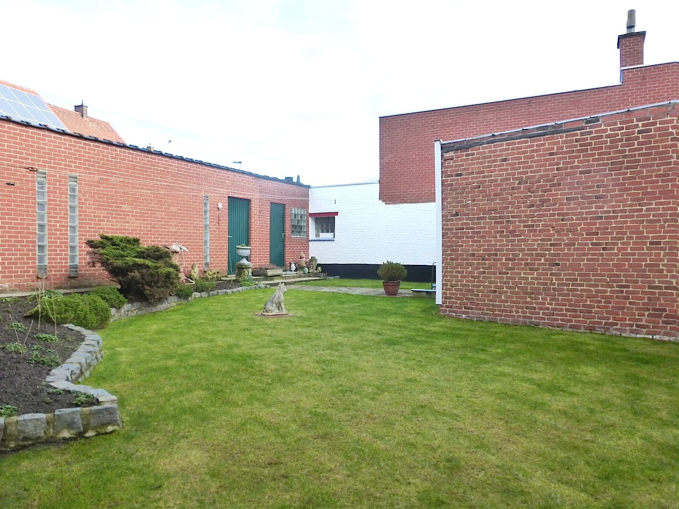 Langs een straatje achteraan kunnen we naar de grote garage. Er is plaats voor 2 wagens! Er is eveneens een handige tuinberging.