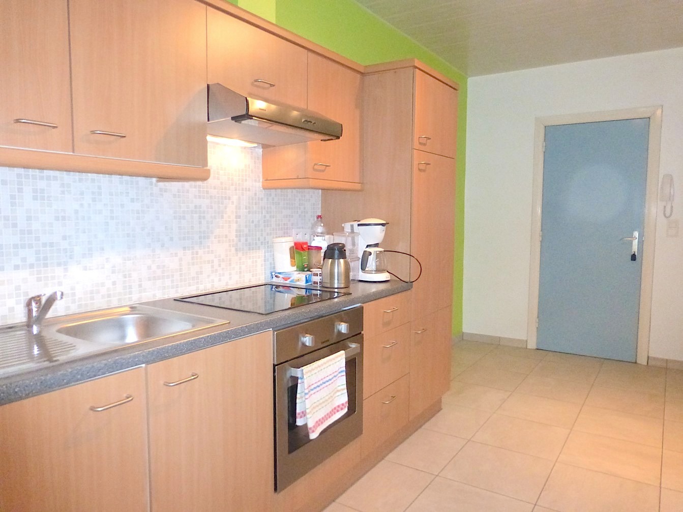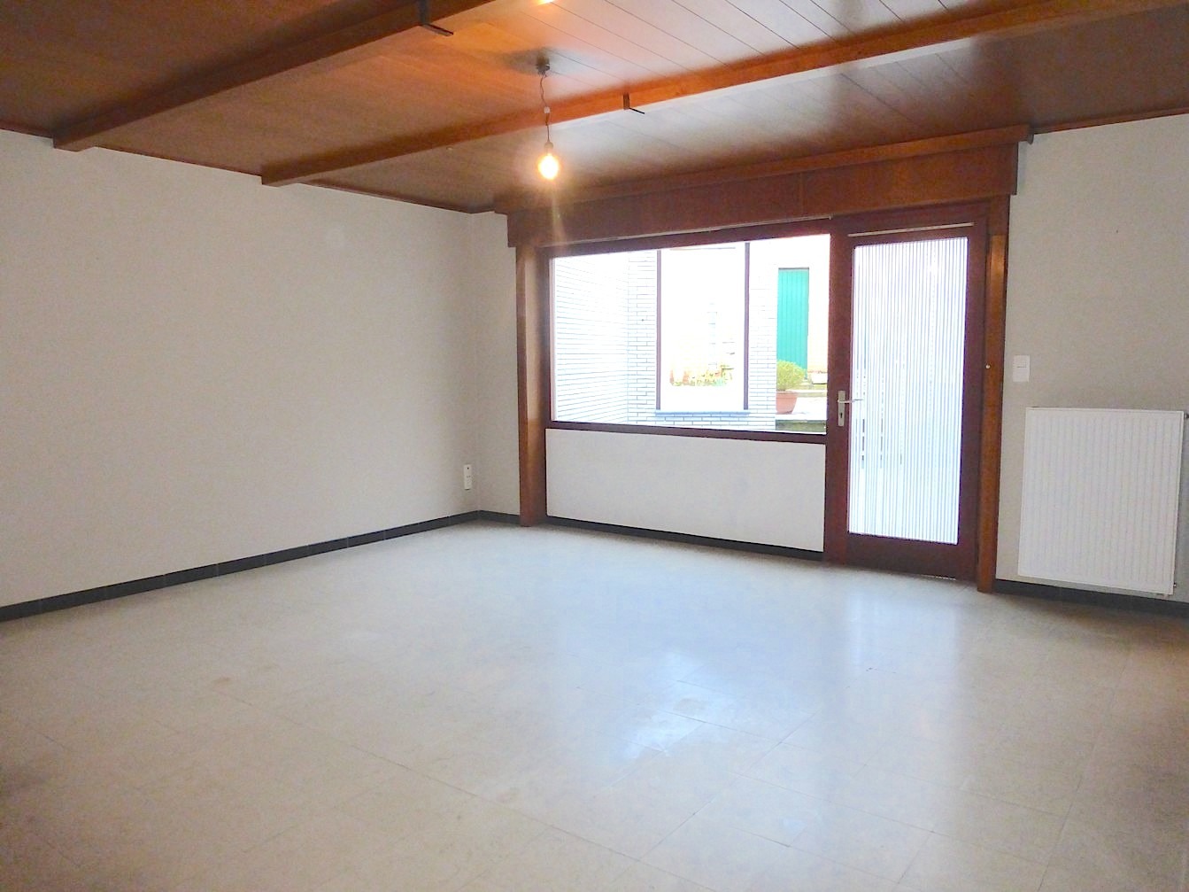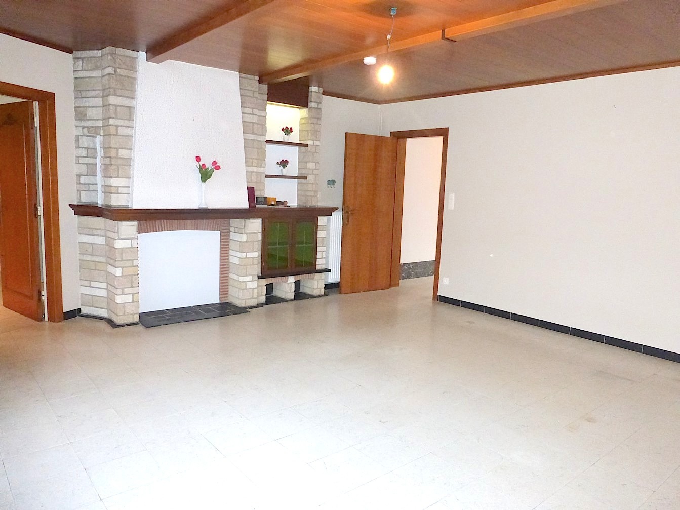 We betreden de woning via de inkomhal met vestiaire om verder te gaan naar de living. Aangrenzend vinden we de ruime, vernieuwde keuken, van waaruit we naar de kelder kunnen.