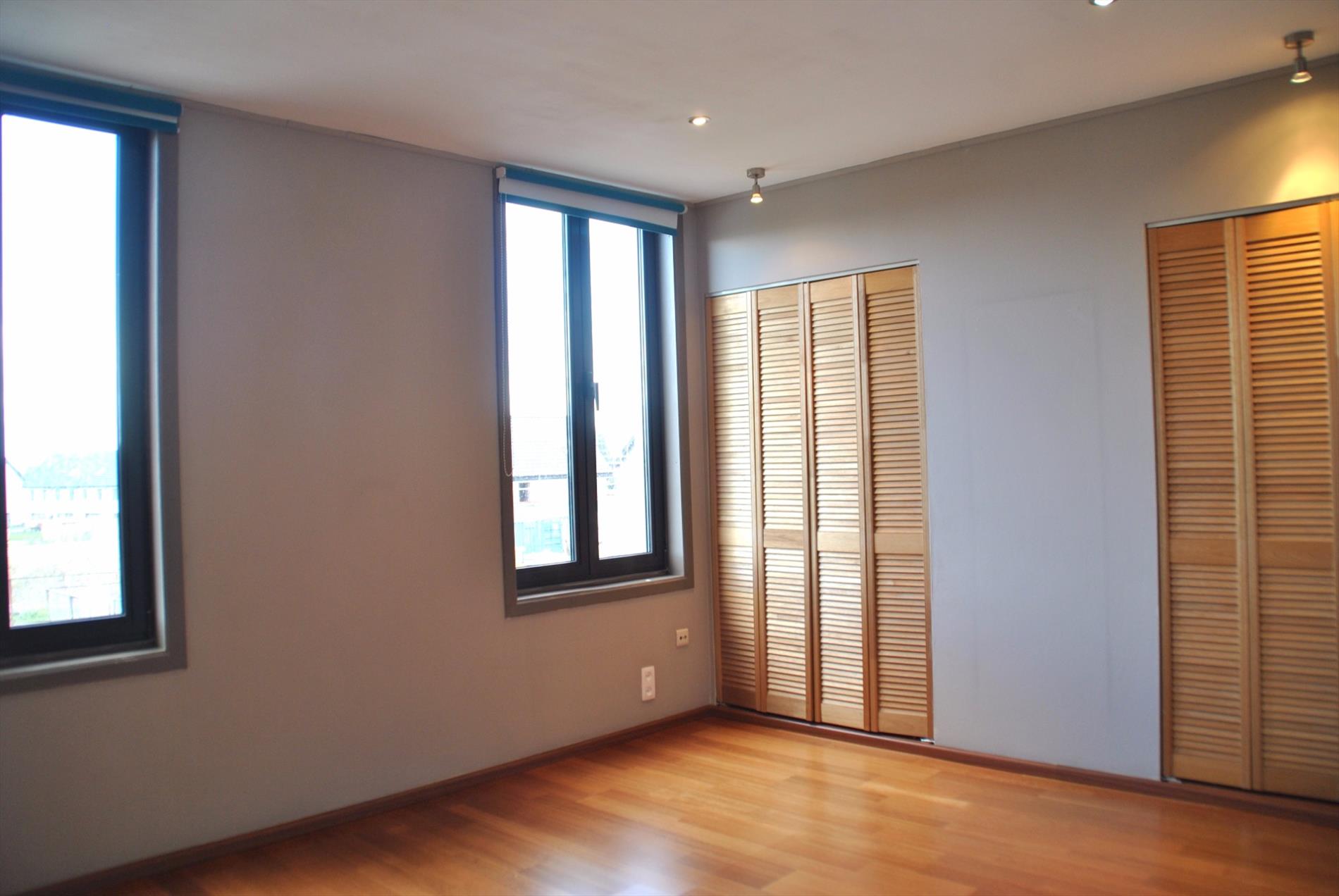 Boven bevinden zich 1 grote en 2 kleinere slaapkamers. In de grote kamer zijn er ingemaakte kasten.