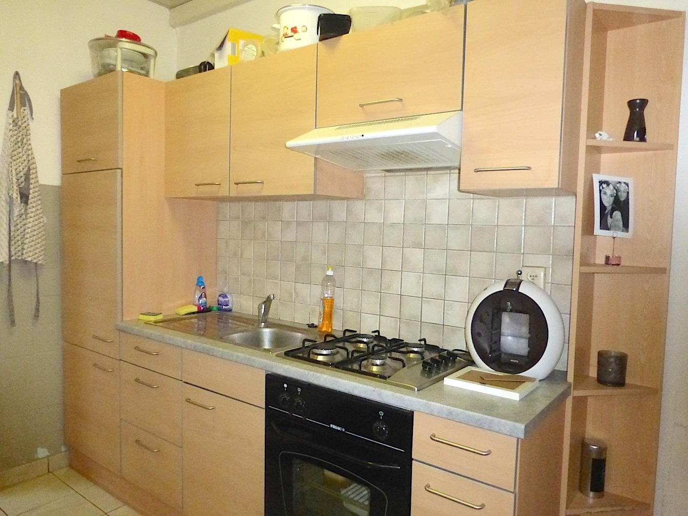 We betreden de woning rechtstreeks in de living, die is ingedeeld als eetplaats en zithoek. Aansluitend vinden we de aparte keuken. Van hieruit kunnen we naar de binnenkoer met buitenberging. Deze is tevens bereikbaar van op de straat. Ideaal om bv fietsen te stallen!