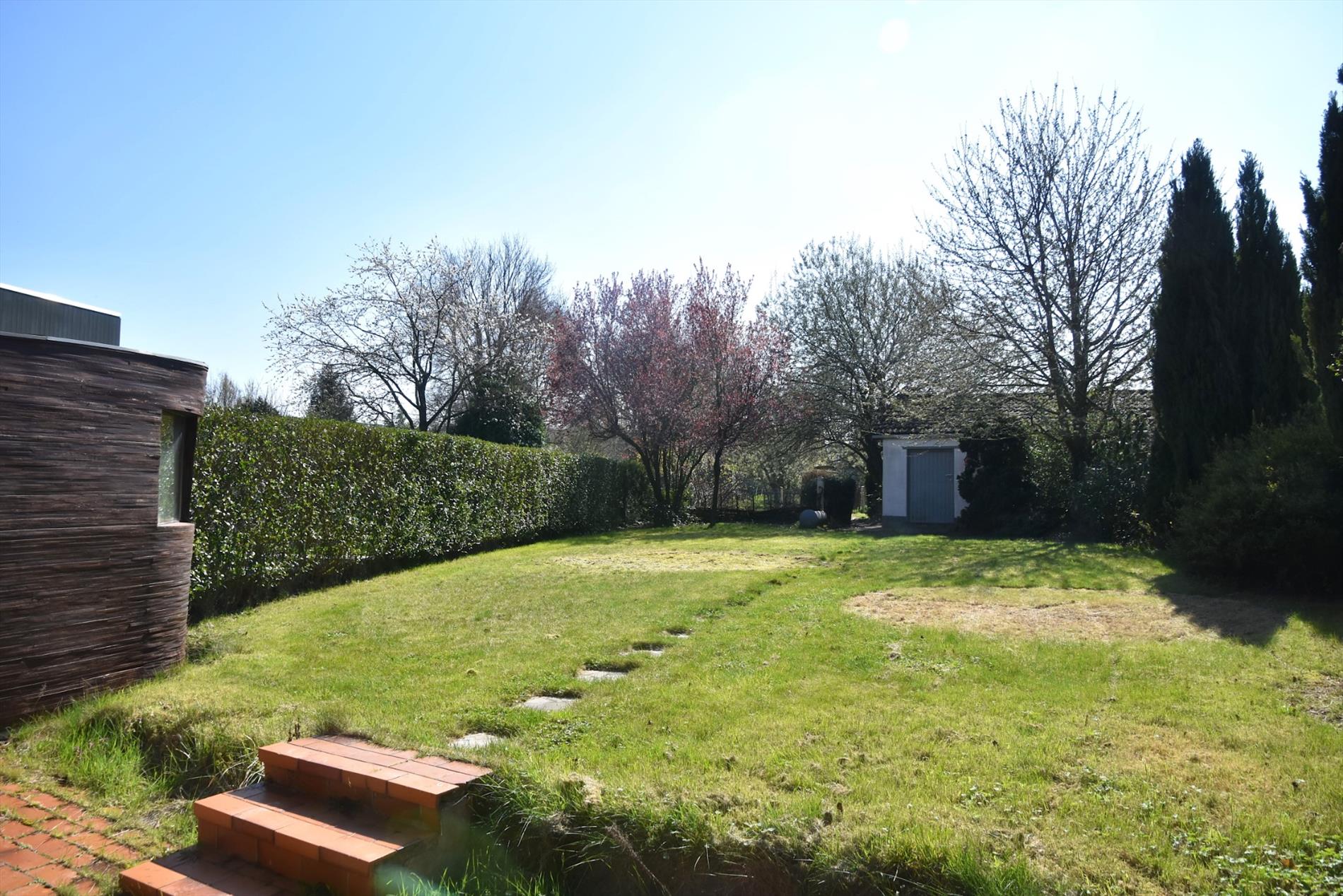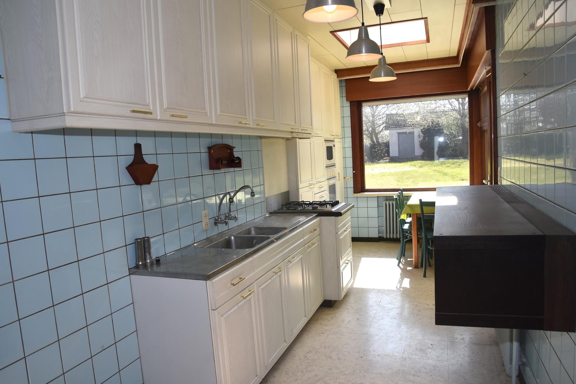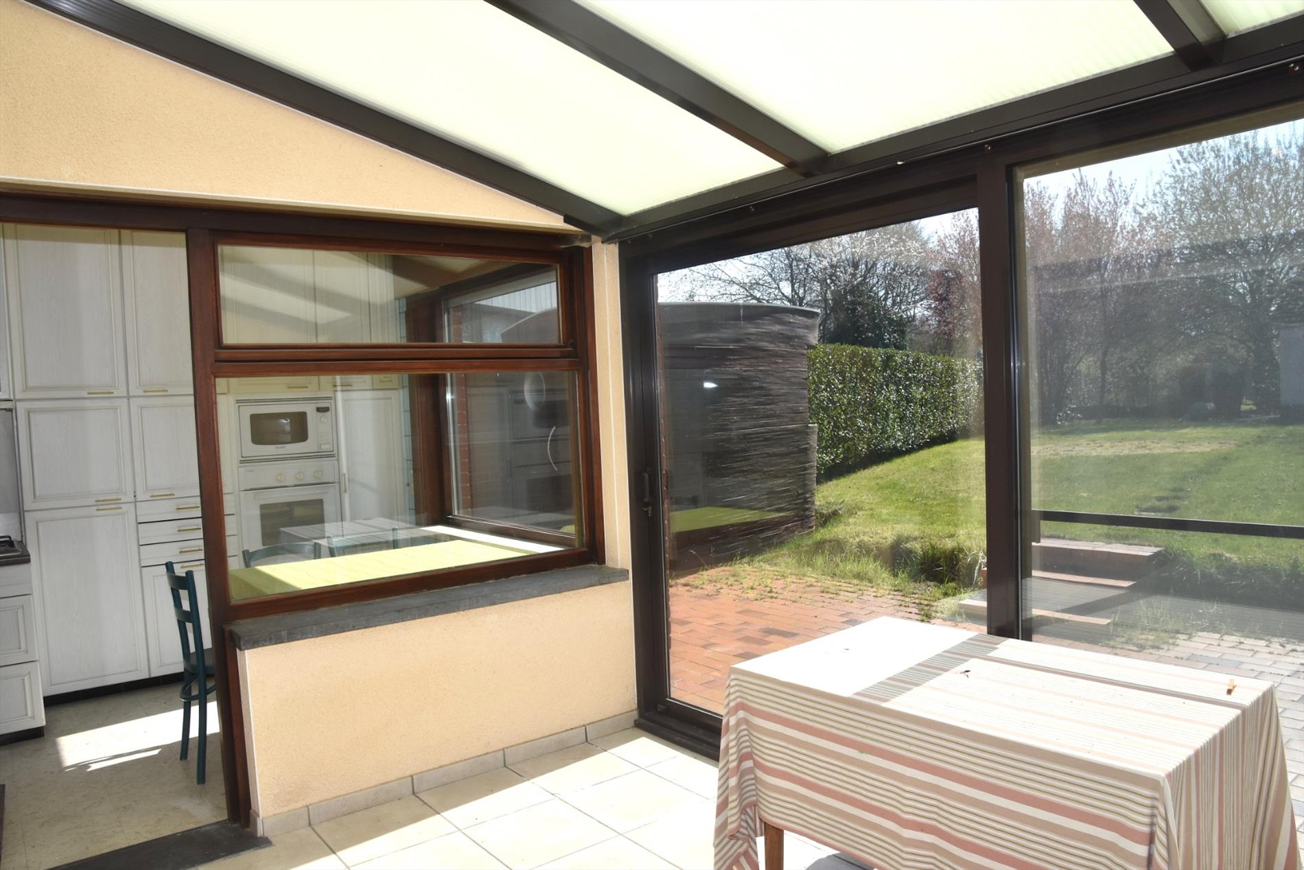 We komen de woning binnen in de hal met apart toilet. De living is omwille van de vele raampartijen heel lichtrijk. De cassette en de aanwezigheid van houten elementen zorgen voor een zeer gezellige sfeer. Aangrenzend vinden we de keuken met veranda. Van hieruit kunnen we naar de grote en leuke tuin met terras. Door de ideale zuid oriëntatie is het er gans de dag genieten in de zon! Achterin de tuin zit een schaapje dat ervoor zorgt dat de achterste graspartij kortgegraasd wordt.
