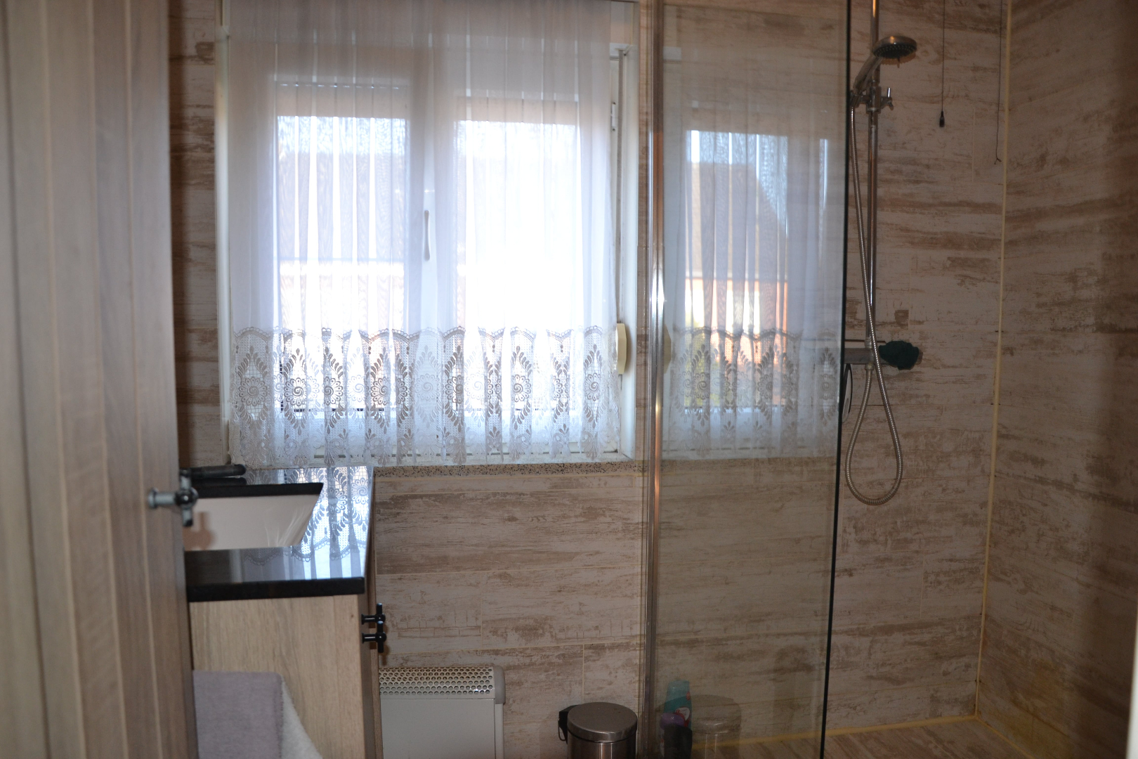 De woning is voorzien van elektrische verwarming en een gezellige houthaard.
