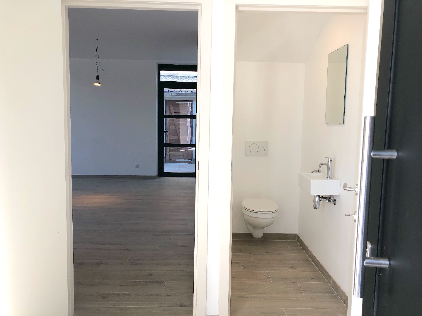 We komen de woning binnen in de hal met apart gastentoilet. De living is ruim en loopt over in de open keuken. Deze is volledig uitgerust met alle toestellen. Via de living kunnen we naar de leuke binnenkoer. Deze is tevens via de straat bereikbaar en beschikt over een handige berging. Ideaal voor fietsen...