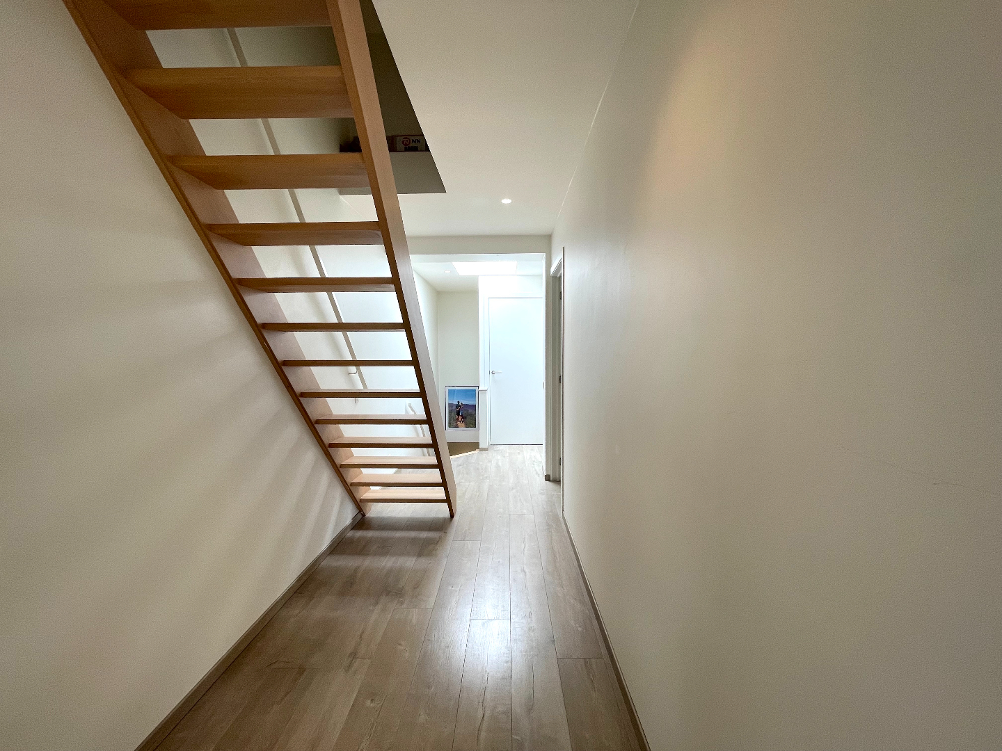 De vaste trap brengt ons naar de 2e verdieping. Ook hier is er nog een kamer én een geïsoleerde zolder waar heel veel bergruimte is.