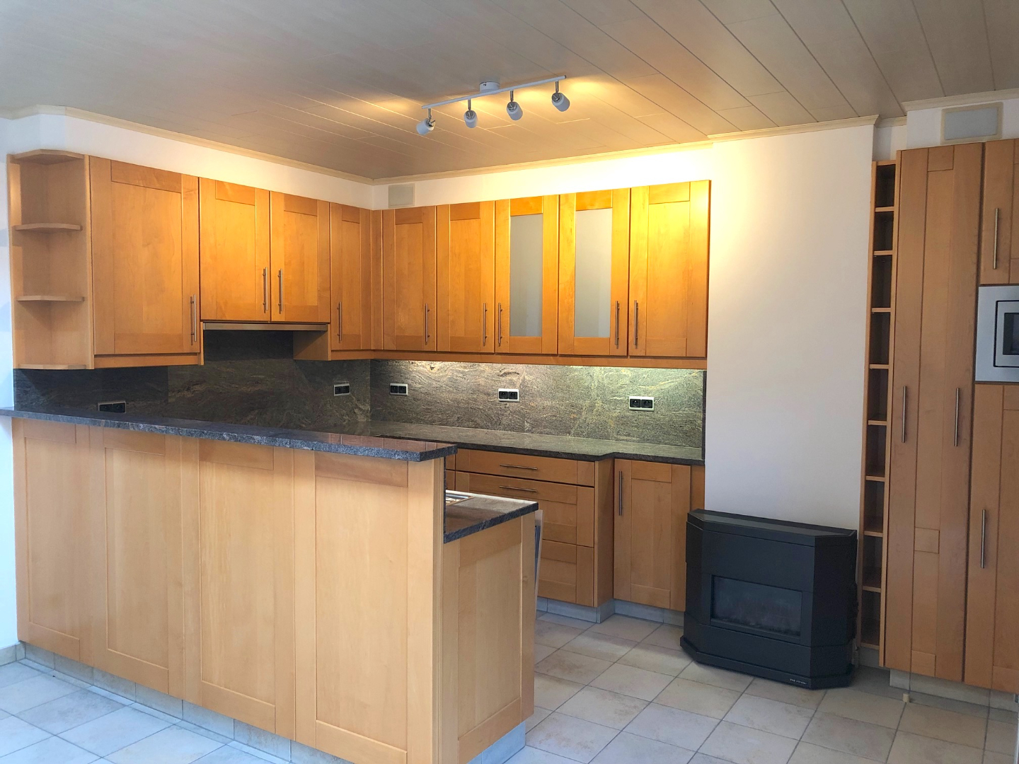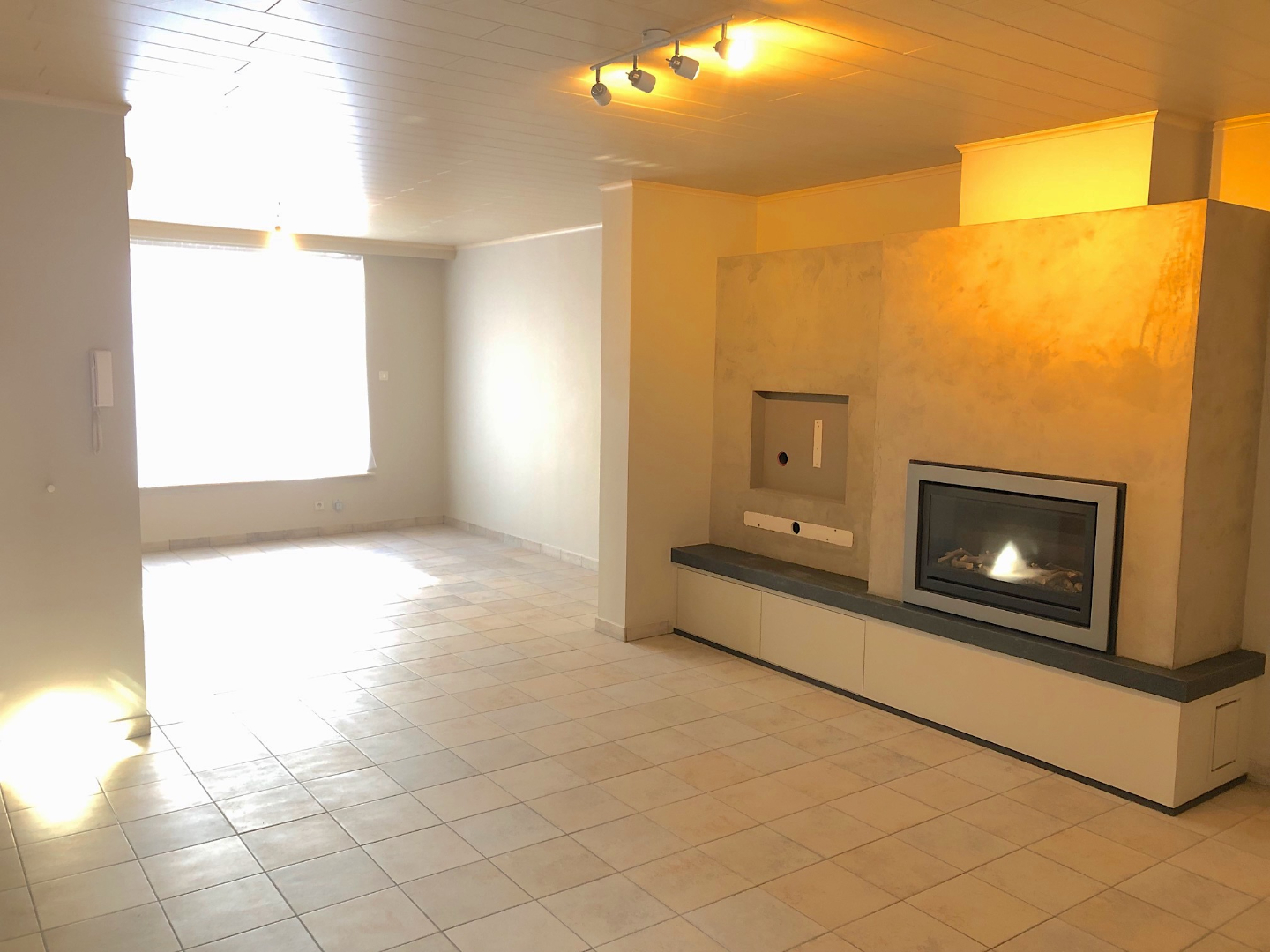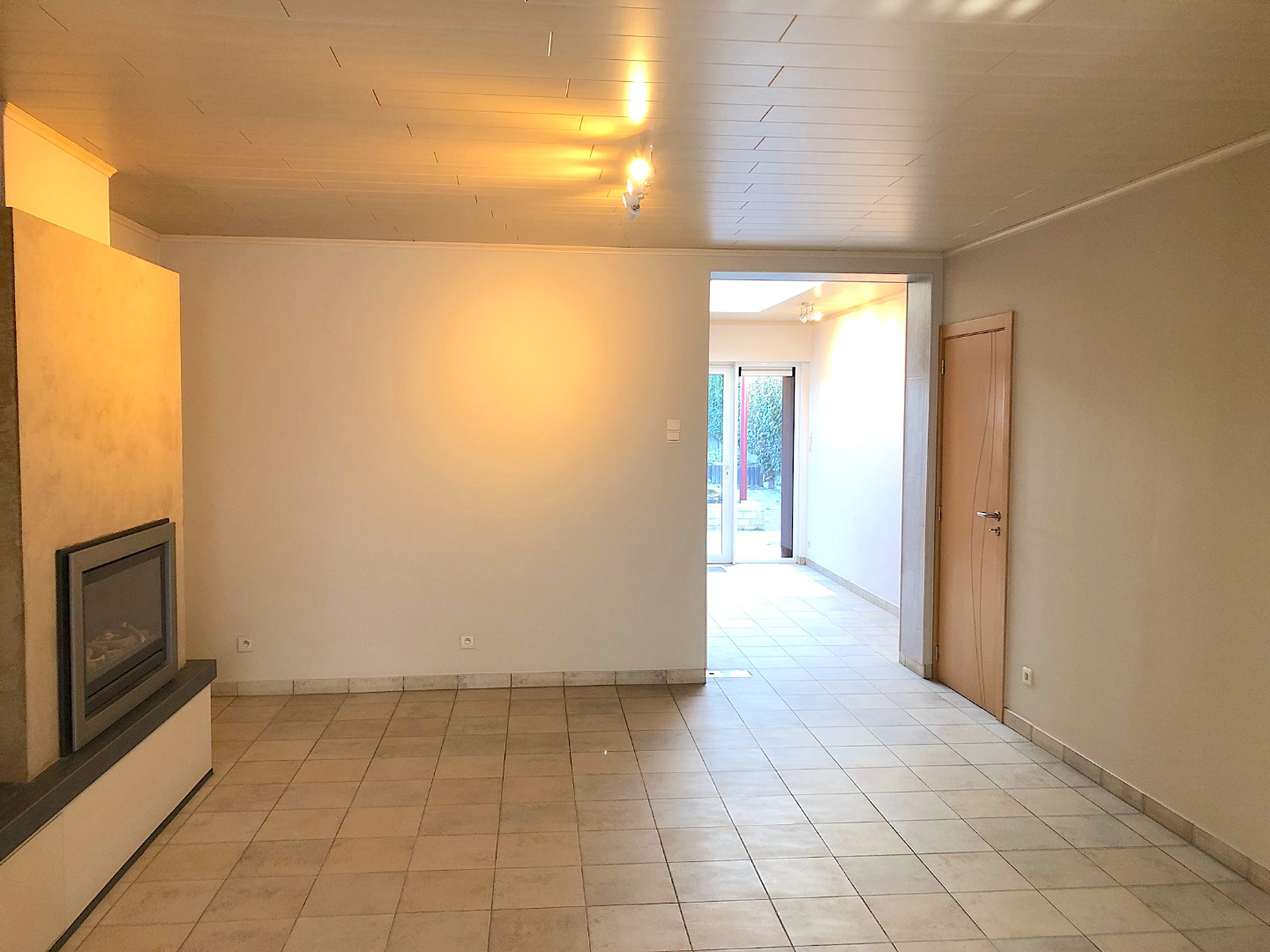 Via de hal komen we in de ruime living. Deze is ingedeeld als een eetkamer en een zeer gezellige zithoek met gashaard, ingewerkt in een prachtige haardwand. De living gaat over in de open keuken. Deze is volledig ingericht en er is plaats voor een ontbijttafel. Van hieruit hebben we zicht op de mooie zuid-tuin. Deze is voorzien van een mooi terras en achteraan is er een ruim tuinhuis/atelier voorzien. Ideaal voor de doe-het-zelver!