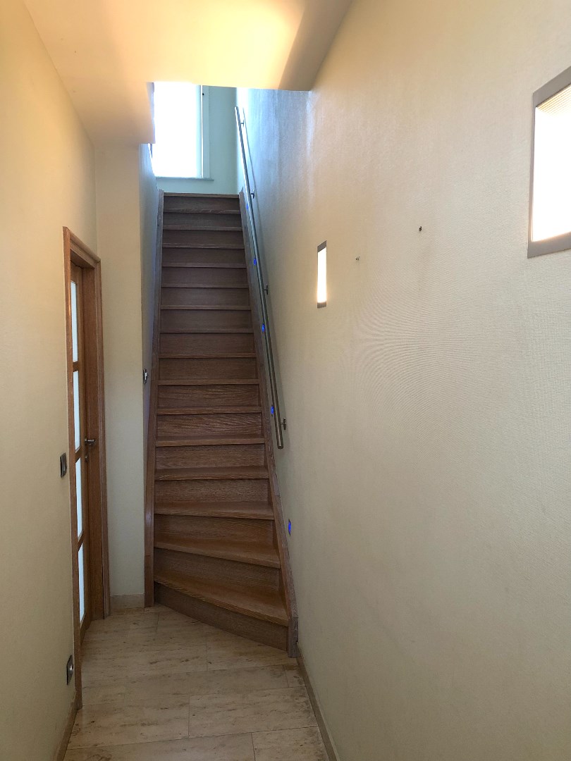 Op het gelijkvloers vinden we verder nog een berging, badkamer met lavabomeubel en bad/douchecombinatie en een toilet.
