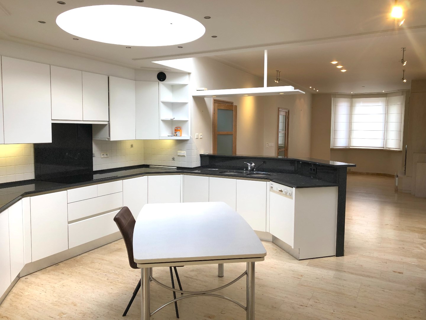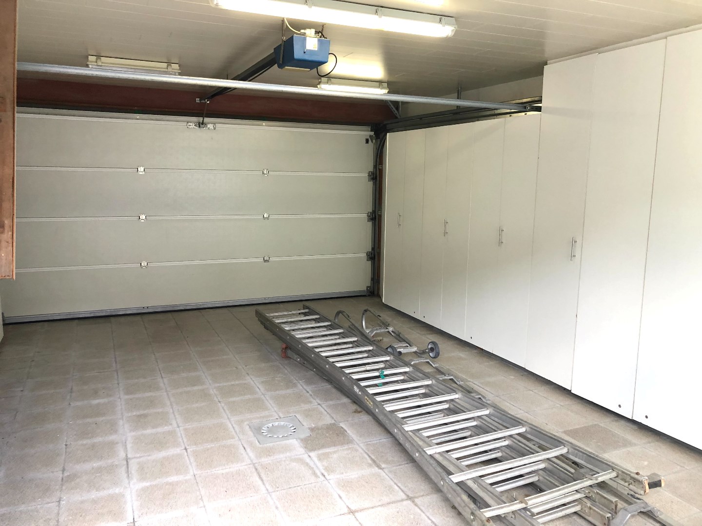 Achteraan is er een ruime dubbele garage met ingemaakte kasten. Deze is bereikbaar via een garagestraat.