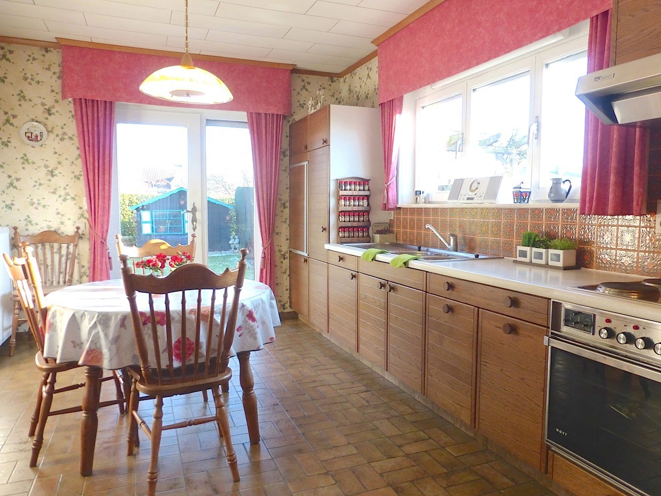 Aansluitend vinden we de aparte keuken. Deze is ruim, waardoor er plaats is voor een ontbijttafel en voldoende kastruimte. Van hieruit hebben we een zicht op de mooie tuin. Deze is eenvoudig aangelegd en beschikt over een terras. Het is er genieten in alle rust en privacy...!