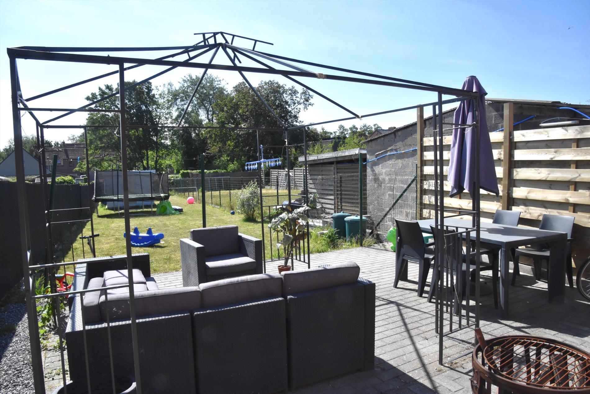 Het grote terras laat u in alle rust genieten van de zonnestralen. De diepe tuin biedt tal van mogelijkheden voor mensen met groene vingers. Een handig tuinhuis biedt plaats aan een grasmachine, tuinmeubelen, ….