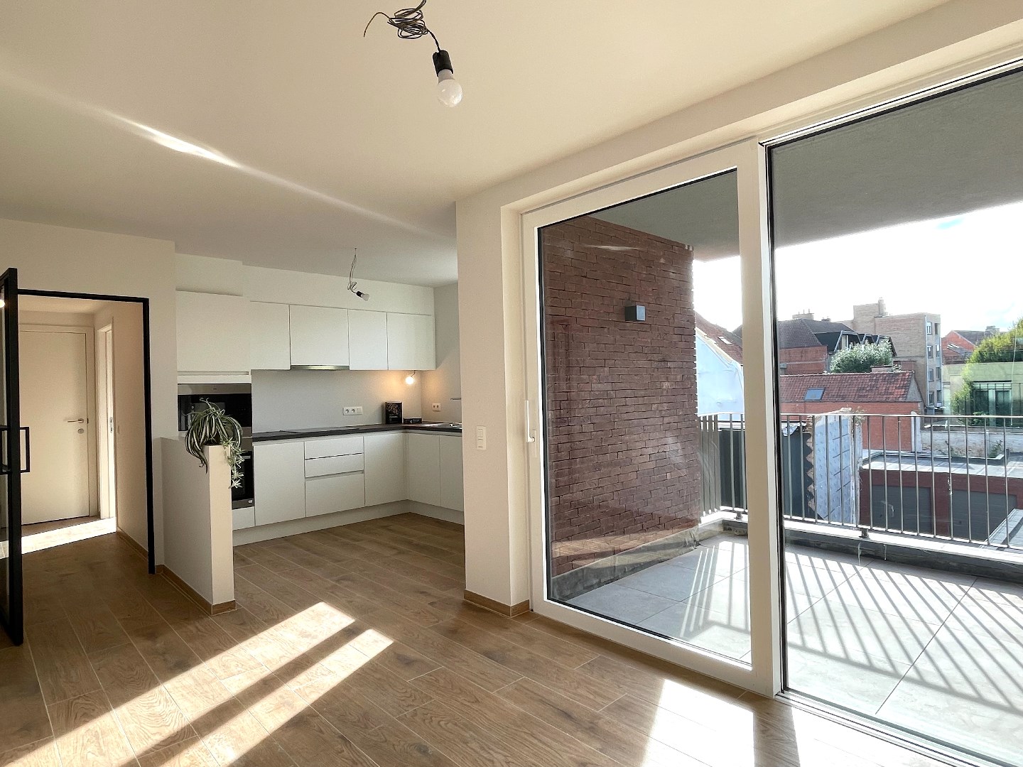 Pal in het centrum van Menen vinden we deze schitterende nieuwe Residentie Novada terug. We stappen binnen de residentie binnen via de mooie inkomhal en nemen de lift naar boven. Op de 2e verdieping van dit mooie pand treffen we een al even knap appartement. Meteen valt de hoogwaardige afwerking op. We komen het appartement binnen en vinden er 2 mooie slaapkamers terug, één vooraan en één achteraan. De badkamer beschikt over een dubbele lavabo en een grote inloopdouche. Het toilet met handwasbakje is apart. Er is eveneens een berging met ruimte voor een wasmachine, droogkast en ander materiaal. In de ruime leefruimte krijgen we door de vele glaspartijen heel veel lichtinval binnen. De leefruimte is opgedeeld in een salon, eetgedeelte en open keuken. De keuken is volledig ingericht (vaatwas, inductiekookplaat, combi-oven, dampkamp, koelkast met vriesvak). Er zijn twee terrassen, één vooraan en één achteraan. Dit biedt u de mogelijkheid om de dag rond van de zon te genieten. Vanop het terras vooraan hebben we zicht op het centrum. Vanop het terras achteraan hebben we een prachtige kijk op het Belfort.