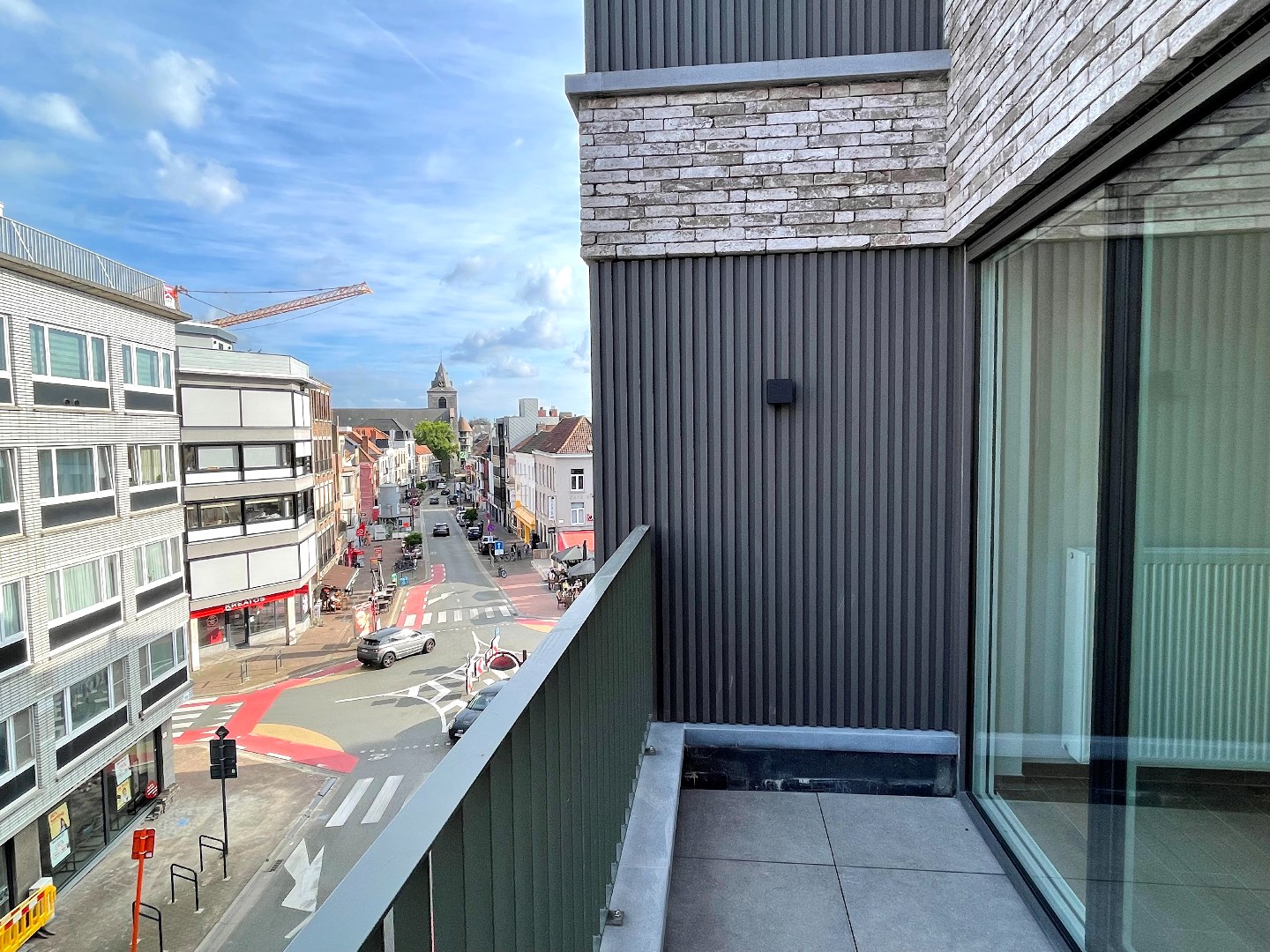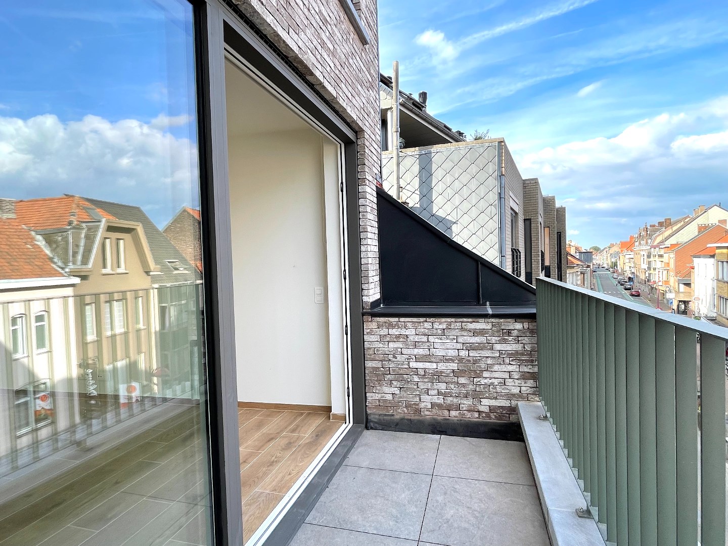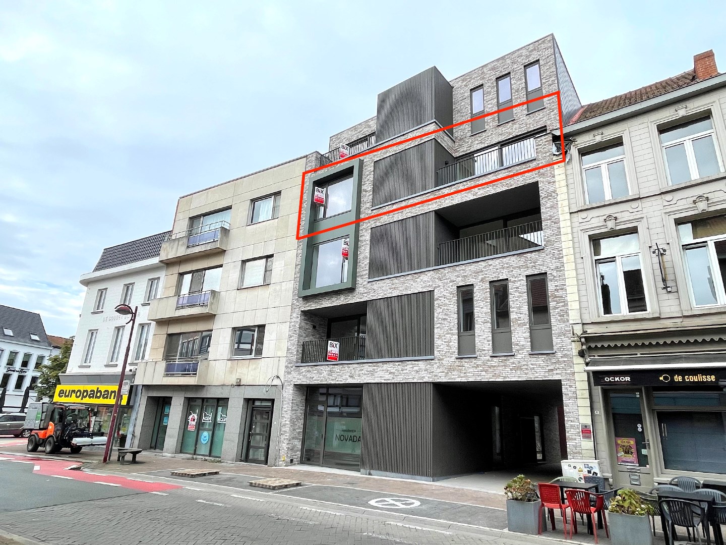 Pal in het centrum van Menen vinden we deze schitterende nieuwe Residentie Novada terug. We stappen binnen de residentie binnen via de mooie inkomhal en nemen de lift naar boven. Op de 3e verdieping van dit mooie pand treffen we een al even knap appartement. Meteen valt de hoogwaardige afwerking op. We komen het appartement binnen en vinden er 2 mooie slaapkamers terug, één vooraan en één achteraan. De badkamer beschikt over een dubbele lavabo en een grote inloopdouche. Het toilet met handwasbakje is apart. Er is eveneens een berging met ruimte voor een wasmachine, droogkast en ander materiaal. In de ruime leefruimte krijgen we door de vele glaspartijen heel veel lichtinval binnen. De leefruimte is opgedeeld in een salon, eetgedeelte en open keuken. De keuken is volledig ingericht (vaatwas, inductiekookplaat, combi-oven, dampkamp, koelkast met vriesvak). Er zijn twee terrassen, één vooraan en één achteraan. Dit biedt u de mogelijkheid om de dag rond van de zon te genieten. Vanop het terras vooraan hebben we zicht op het centrum. Vanop het terras achteraan hebben we een prachtige kijk op het Belfort.