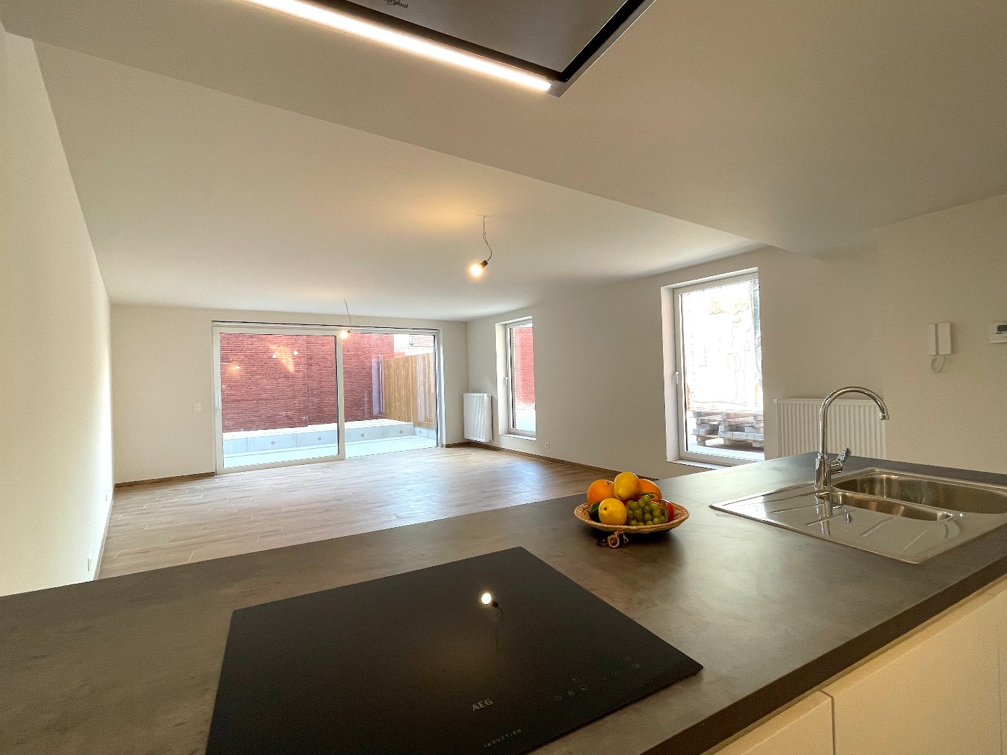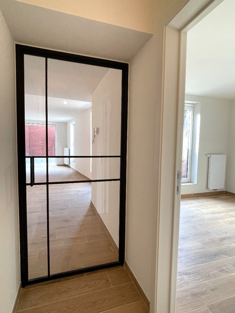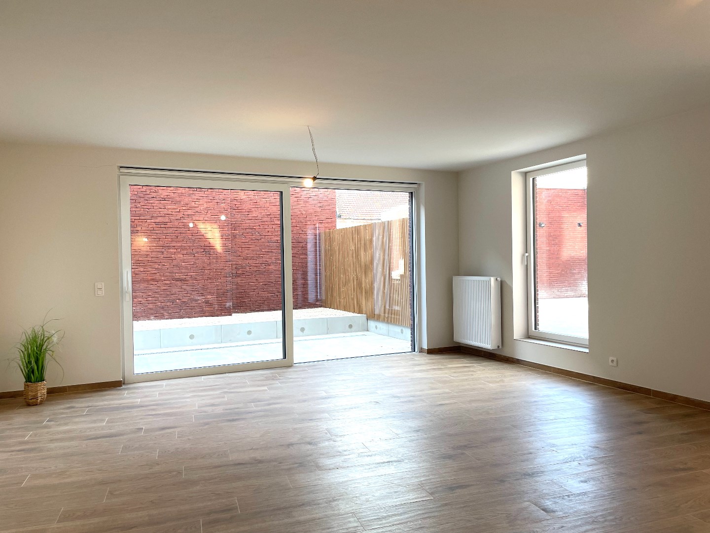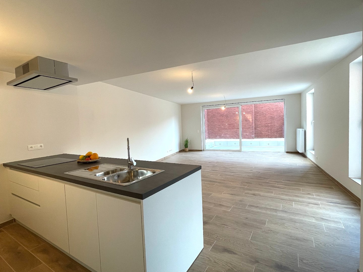 Pal in het centrum van Menen vinden we deze schitterende nieuwe Residentie Novada terug. We stappen binnen de residentie binnen via de mooie inkomhal. We gaan binnen in het appartement op de gelijkvloerse verdieping. Meteen valt de hoogwaardige afwerking op. We komen het appartement binnen en vinden er 2 mooie slaapkamers terug. De badkamer beschikt over een dubbele lavabo en een grote inloopdouche. Het toilet met handwasbakje is apart. Er is eveneens een berging met ruimte voor een wasmachine, droogkast en ander materiaal. In de ruime leefruimte met open keuken krijgen we door de vele glaspartijen heel veel lichtinval binnen. De keuken is volledig ingericht (vaatwas, inductiekookplaat, combi-oven, dampkamp, koelkast met vriesvak). Er is een heel groot terras waar u in alle rust kan genieten.