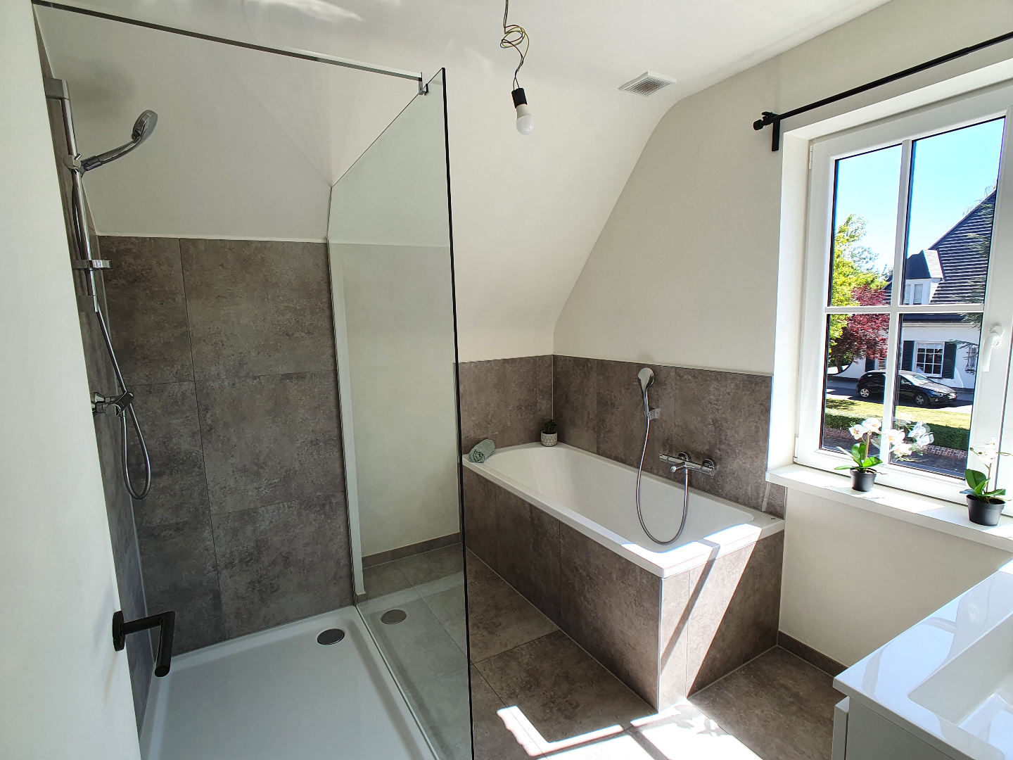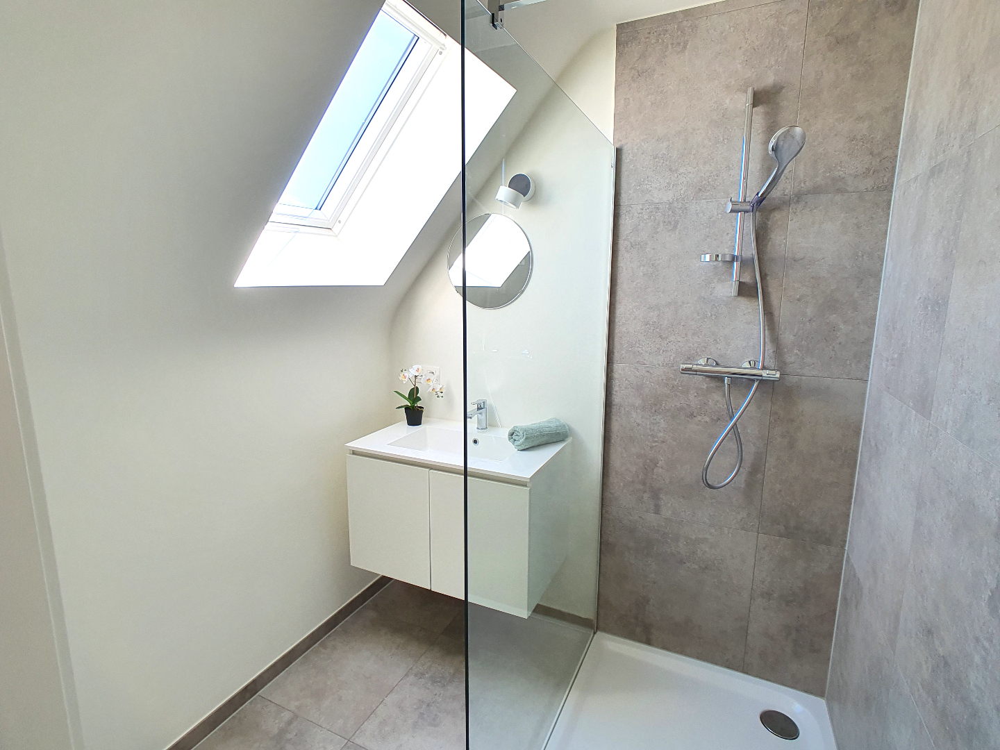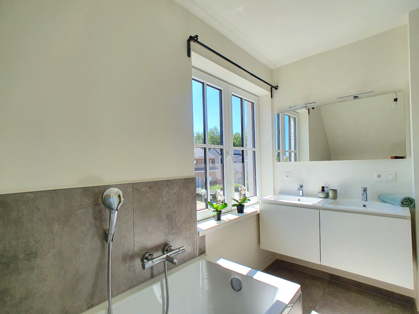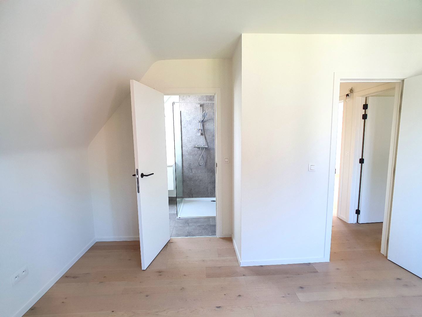 De verdieping beschikt over een slaapkamer met aansluitende badkamer (met lavabo en douche), nog 2 slaapkamers en een ruime badkamer met douche, ligbad en dubbel lavabomeubel. Het toilet is apart.