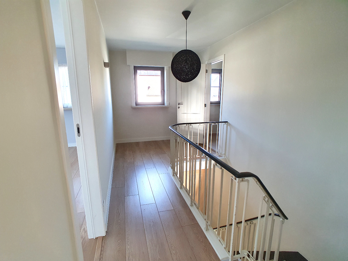 De verdieping beschikt over 3 ruime slaapkamers (waarvan 1 met ingemaakte kasten) en een badkamer met dubbel lavabomeubel, ligbad, inloopdouche en toilet.