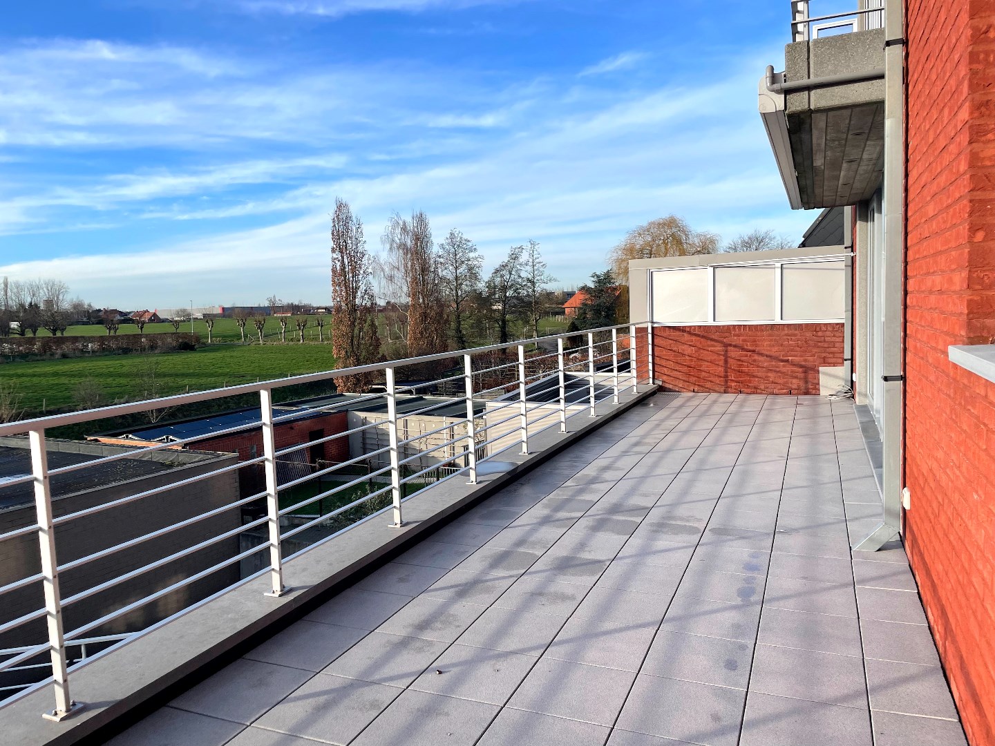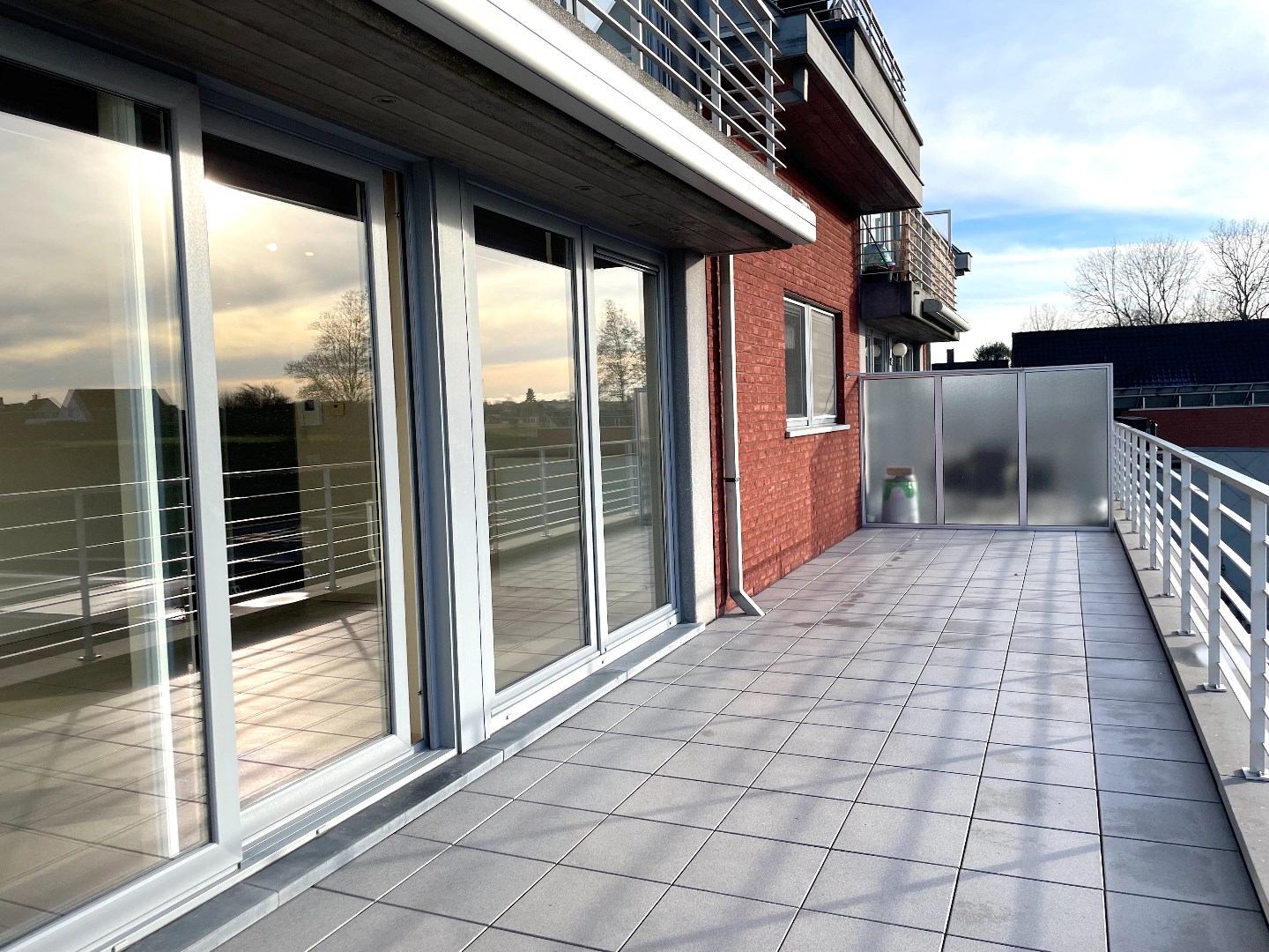 De grote troef van dit appartement is het schitterende, zuidgerichte terras van 33 m2. Hier heeft u echt het gevoel op het dak van de wereld te zitten. Er is een mooi zicht op het groene achterland.