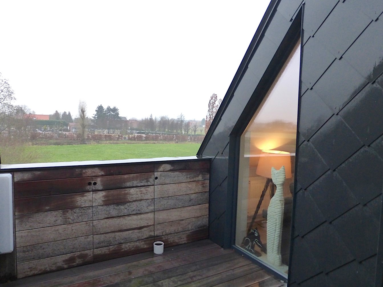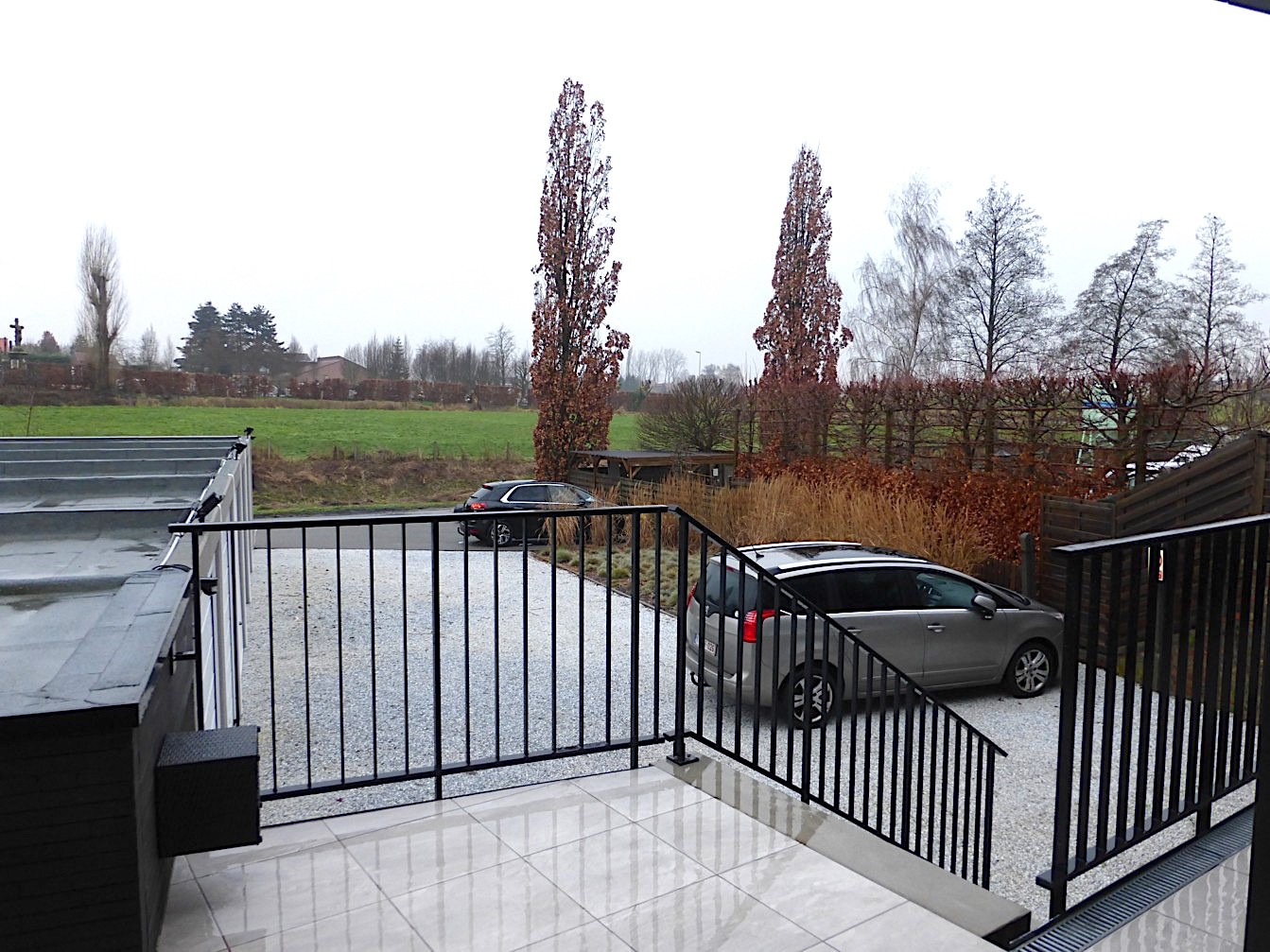 Het verdiep erboven beschikt over 2 mooie slaapkamers. Via de living kunnen we op het terras, vanwaar we een mooi open zicht hebben op het groene achterland.