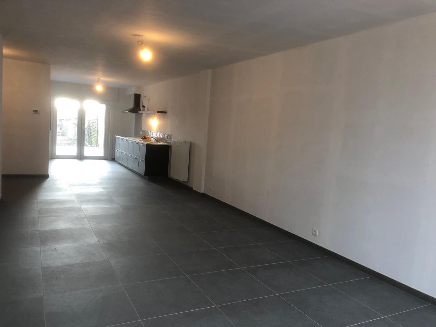 Via de inkomhal met apart toilet, betreden we de lichtrijke leefruimte met open keuken, die zicht geeft op terras en tuin.
