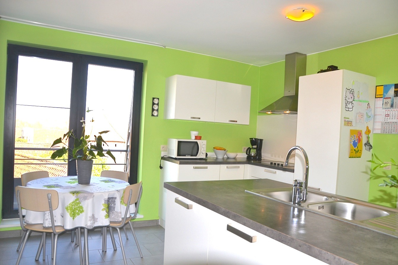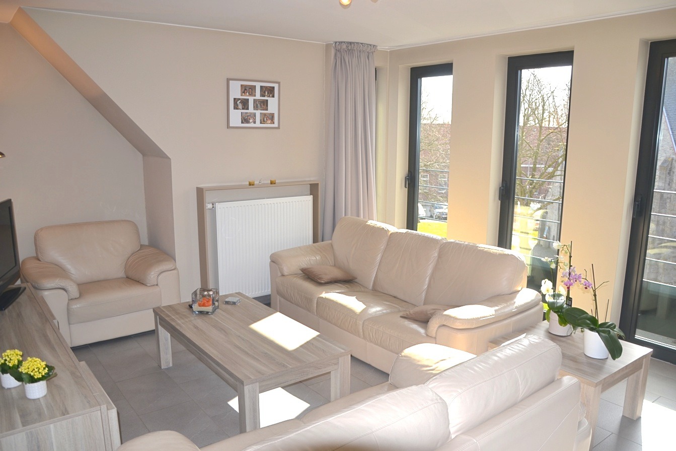 Via de lift of trap komen we op de tweede verdieping, waar dit recent appartement in een blokje van 2 appartementen, is gelegen.